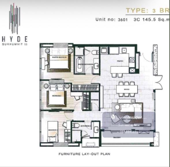 For rent Condo hyde sukhumvit 11 Penhouse 36floor 146 Sq.m (S03-1172) Condo hyde sukhumvit 11 Penhouse 3 Bed 3 bath 146 Sq.m partially decorated price 160,000 nath Deposit 2 months For more details or