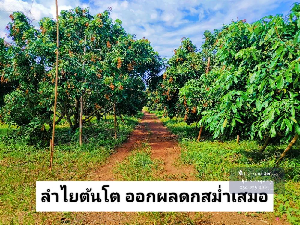 - Selling a beautiful plot of land with a longan orchard, big and producing lots of fruit regularly. Can sell and continue doing business - Title deed area 28-2-58 rai (11,458 sq m.), including 2 title deeds. - The land type is a flat area, foothills, beautiful mountain view, near Khao Soi Dao. Shady atmosphere - The land in front has been filled in, 10 rai, and is a multi-purpose yard. There is a warehouse, workers' quarters, and some land is a pond for use in longan plantations. Suitable for investment, agricultural business, agritourism business, fruit orchards or longan farming. And the front can be used as a warehouse, factory, or fruit dryer. - Width next to the Chanthaburi - Sa Kaeo highway (Highway 317) approximately 308 meters. - Land coordinates: Located at kilometer marker 54 of Chanthaburi - Sa Kaeo Road (Highway 317), approximately 2.50 km. from Tamun Intersection. Highlights of the land: - Good location, convenient travel The front of the land is next to Chanthaburi-Sa Kaeo Road (Highway 317), 4 lanes, 16 meters wide, with shoulder. - The front of the land is next to the main road, 308 meters wide, beautiful plot shape. - The land in front has been filled in, 10 rai. The back is a flat hillside area, no need to fill in, beautiful mountain view. - Good quality longan garden You can harvest your produce and resume your business immediately. - There is a ready-to-use utility system such as electricity, water, and telephone. - Land title deed (NSor. 4, Garuda Daeng Province) ready to transfer. Location: Next to Chanthaburi-Sa Kaeo Road (Highway 317) Km. 54, Sai Khao Subdistrict, Soi Dao District, Chanthaburi Province. Coordinates: 13.05174634, 102.26201783 Nearby important places: Ban Tamun School, Triam Suksa Soi Dao School, Tamun Temple, Khao Soi Dao Nuea Temple, Tham Sarika Temple, Sai Khao Subdistrict Administrative Organization, Soi Dao Vocational College, Tesco Lotus Soi Dao, Mini Big C Soi Dao, Soi Dao Hospital, Soi Dao District Office, Soi Dao Provincial Police Station, Chandraphikun Market, Khao Soi Dao Waterfall, Khlong Phra Phut Reservoir, hotels and resorts in Soi Dao District. ***Selling price for the whole plot: 80,206,000.- baht or 2,800,000 baht per rai (all expenses on transfer day 50/50)*** If interested, call urgently: Tel. Contact number, Contact number Ms. Uraiwan (Jum) Line ID : Contact number Email : Contact email www.jplusproperty.myweb.in.th Consignment service for selling-buying-renting all types of real estate.