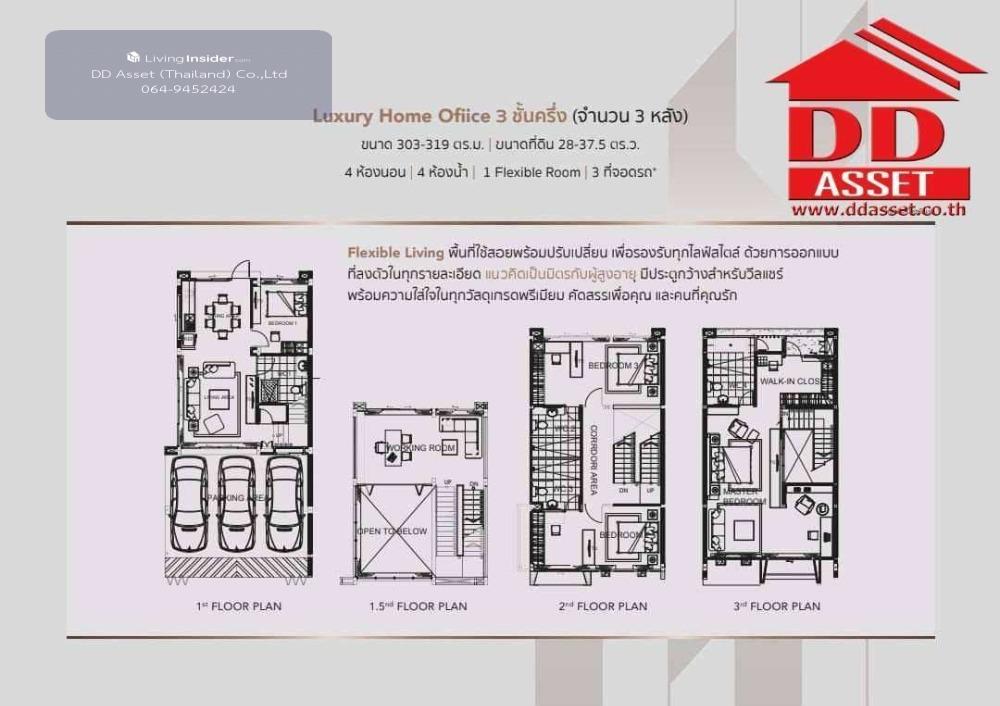 Home office for sale, 3 and a half floors, Diamond Ville Chokchai 4, corner house (Diamond Ville Chokchai 4), only 100 meters to Soi Chokchai 4 Code T8039 Property details: Home office, 3 and a half floors, Diamond Ville Chokchai 4 project, fully furnished, near the expressway road - Ramintra and Lat Phrao Road - Selling price: 16,800,000 baht (free transfer)- Usable area: 300 sq m - Area: 37 sq m - Size: 3 bedrooms, 4 large bathrooms 1 Master Bed Room 60 sq m. +Walk in Closet 1 Double Volume living room almost 6 meters high, 1 dining room, 1 storage room, 1 Western kitchen, 1 Thai kitchen. (Small bedroom size 25 - 30 sq m/room)-has a washing area -Complete addition to the back of the house - Digital Door Lock system - There are 8 CCTV Wifi points - Parking for 2 - 3 cars - Built-in furniture, beautiful and luxurious, ready to move in in every room **Furniture: : 6 air conditioners (2 ceiling mounted air conditioners), sofa, dining table, bed, wardrobe, etc. _________________Location: Soi Lat Phrao Wang Hin 4, Lat Phrao Subdistrict, Lat Phrao District, Bangkok 10230 _________________Diamond Ville Chokchai 4 project, home office, Modern Luxury style, project owner Top Quality Property Company Limited, there are only 3 units There is a Smart Home system with fingerprint scanning + vibrating anti-theft system in every house. Nearby places : - Near the Yellow Line (Phawana Station or Chokchai 4) - Paolo Chokchai 4 Hospital - Central Eastville- Crystal Park Department Store - CDC - Lotus along the expressway - Home Pro - Satri Wittaya 2 School - Chokchai Police Station 4______________ Ask for more details and make an appointment to view at Line : @ddassetthailand https://lin.ee/Pqh1kgGoffice : Contact number (Khun Dai) Office: Contact number (Khun Pen) (A) See more other properties. www.ddasset.co.th Like the page https://www.facebook.com/ddassetthailand/ DD Asset (Thailand) Co., Ltd. Accepting sales, deposits, mortgages, rents, houses, land, condos, all types of real estate #DDAsset #House for sale #Condo #1st hand house #2nd hand house #Selling second hand house #House for sale #Second hand house #Single house #Factory #Land #Diamond Ville Chokchai 4 #Lat Phrao