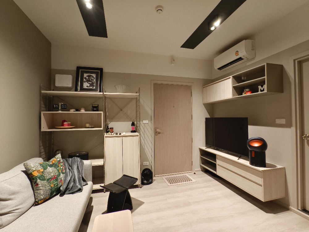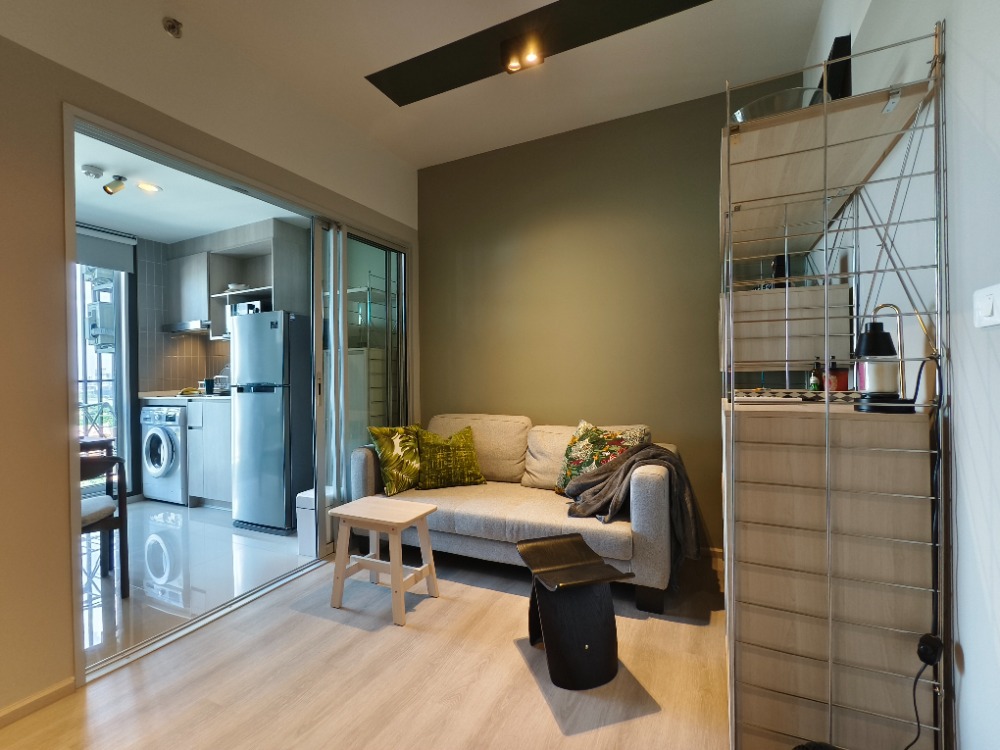 For rent, 1 BR condo, 16th floor, Ideo Charan70-Riverview project, Fully Furnished, ready to move in (owner lets it go) - Decorated in Cosy Living style in Beige, Olive Green and Deep Green tones cont
