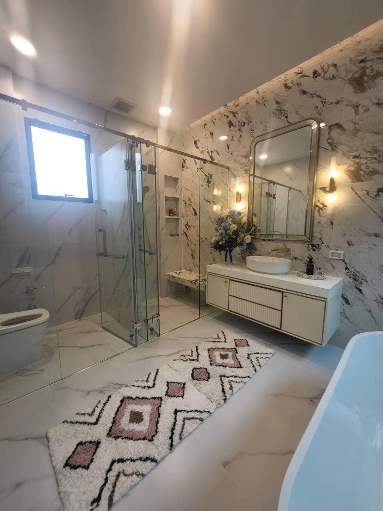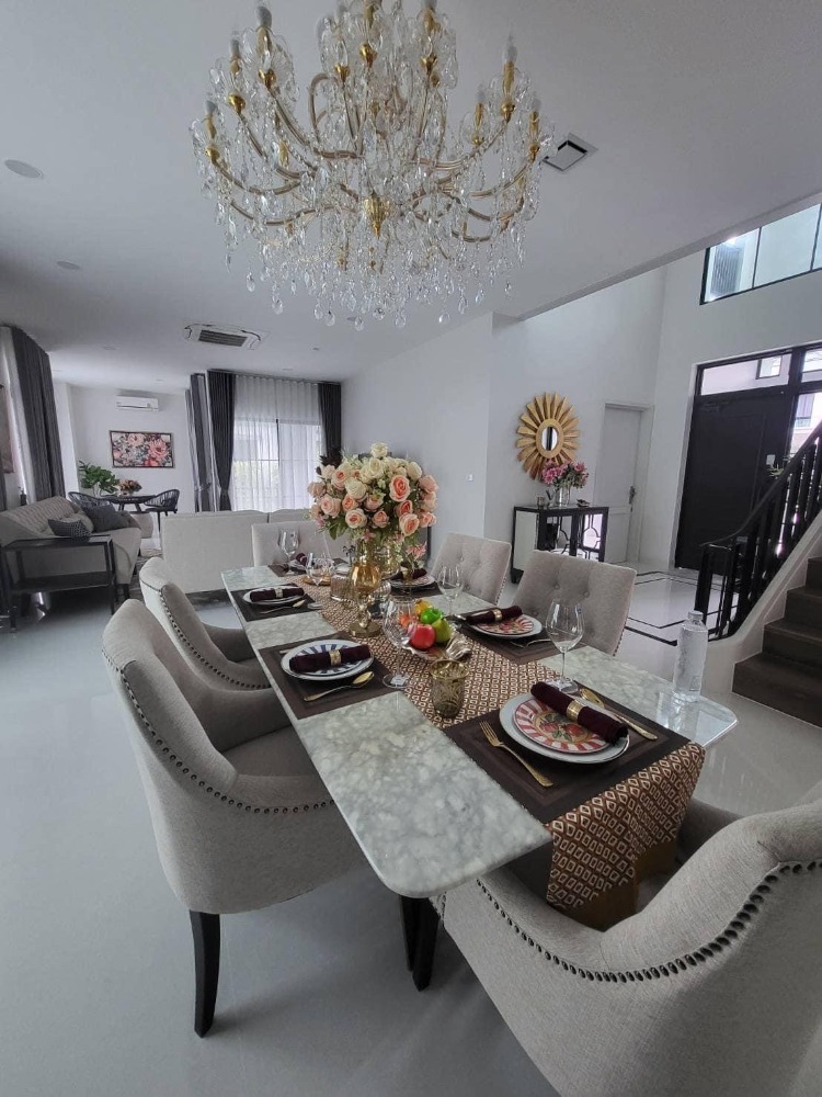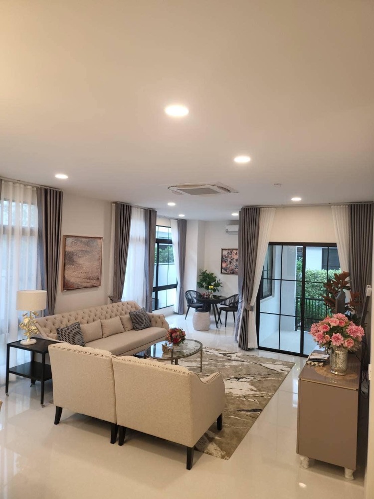 S0247 Project name: Nantawan Rama 9-New Krungthepkreetha (นันทวัน พระราม 9 – กรุงเทพกรีฑาตัดใหม่) Location: Bangkok Greentech Road, Soi Kanjanaphisek 12, Saphan Sung Sub-district, Saphan Sung District, Bangkok. Near Little Walk Bangkok Greentech 1.0 km, Brighton International School 2.8 km, Market Place Bangkok Greentech 3.1 km, Wellington College International School 3.2 km, Unicorn Golf Course 3.9 km, The Park Bangkok Greentech 4.1 km. HOUSE DETAIL Usable area: 378.00 sq.m. Land size: 121.00 sq.w. Bedrooms: 4 bedrooms Bathrooms: 6 bathrooms maid room: 1 maid's room Floor: 2 Storey Furnishings: Fully furnished Parking: 4 Parking Facilities: Clubhouse, saltwater swimming pool with children's pool, fitness center, co-living & working space, public park, large pond, underground electrical lines throughout the project, EV charger, CCTV system around the project, key card access for entry and exit, 24-hour security personnel Rental Price: 300,000 THB per month ** Many other units to choose ** --------------------------------------------------------------------------------------------------------------- FOR PROPERTY VIEWING AND FURTHER INFORMATION PLEASE CONTACT Mobile & Whatsapp: +66 (0)994 565 46 five E-mail: sukritmns(at sign)gmail.com Line(have sign @): @cproperty Website: clickproperty.co.th 🗝️ We have a support team available 24 hours. 🗝️ We offer free property search services for houses and condos based on your preferences. 🗝️ We ensure that our customers receive the best benefits and value through negotiation and clearance services. 🗝️ We guarantee customer satisfaction based on over 1,000 cases we have handled.