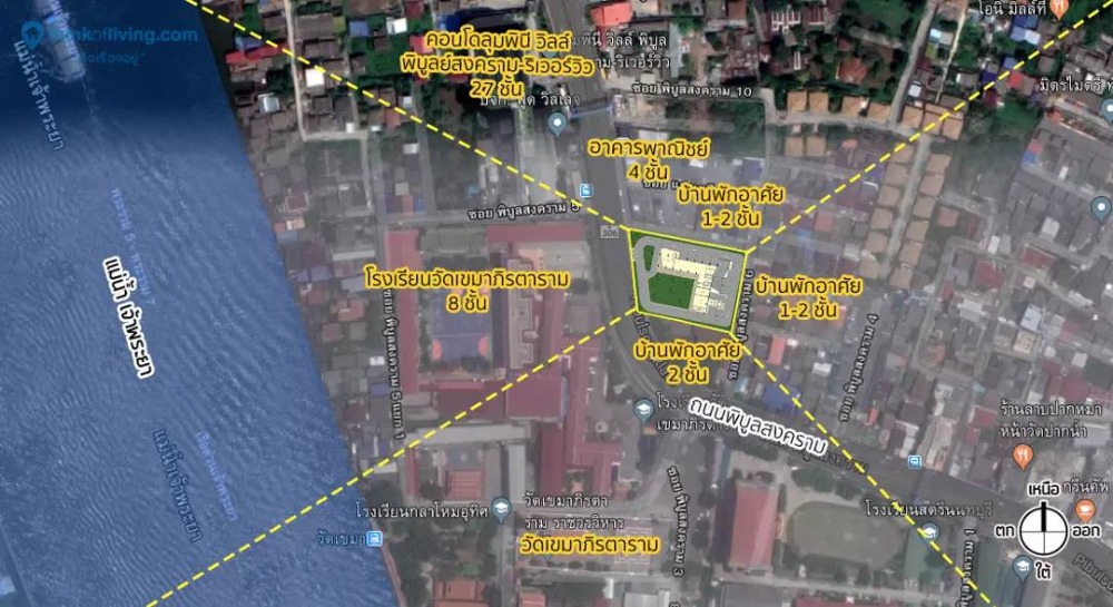 • North: is the direction where there will be tall buildings blocking the view of the river in the distance with Lumpini Ville Phibunsongkram-Riverview Condo. But it doesnt directly block views