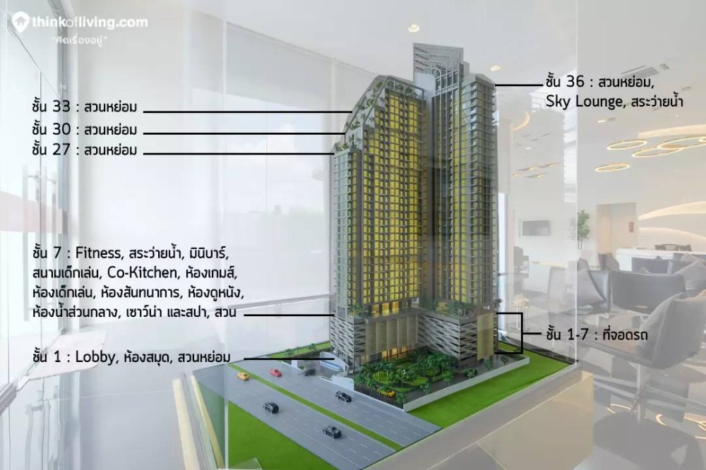 • Convenient for every trip. With a premium common area • High Rise Condo 36 floors, 1 building, design combining nature with the concept of living