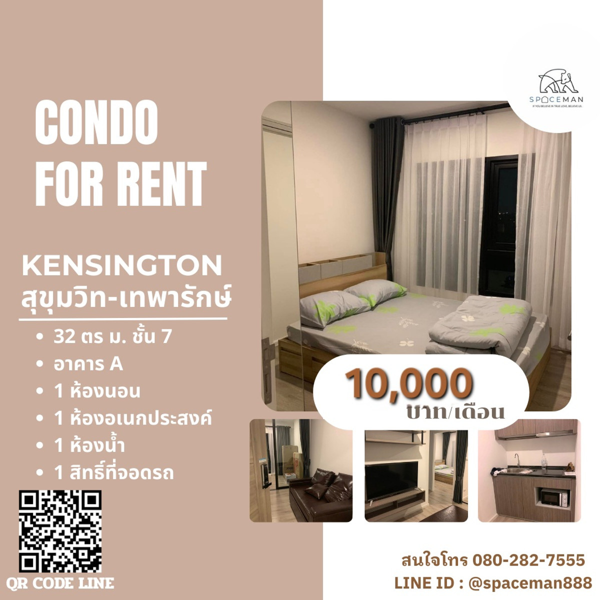 ✅ Price 10,000 baht / month 👉 Area 32 sq m. 👉 6th floor 👍 Full furniture and appliances ⭐️ Minimum 1 year contract (care for the entire lease term) ⭐️ First payment 1 month in advance + 2 months security deposit ♥️ Interested, contact Khun Meen ☎️ Tel. Contact number Line ID: @spaceman888