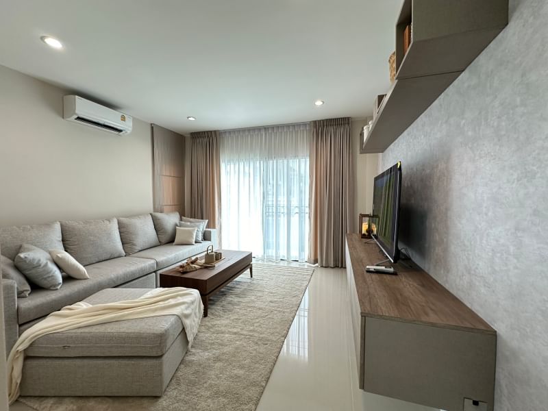For rent, 2-story detached house, The Complete Sriracha Village. For rent 48,000 / month. Deposit 2 months - 1 month in advance Usable area 230 sq m. 3 bedrooms, 3 bathrooms Parking for 2 cars 100% complete furniture - Large detached house - Air conditioning in every room - Free WiFi - Home repair service within 24 hours - Monthly gardening service - Laundry delivery service (Pay each time only for guests. Not included in the rental price) T : A4