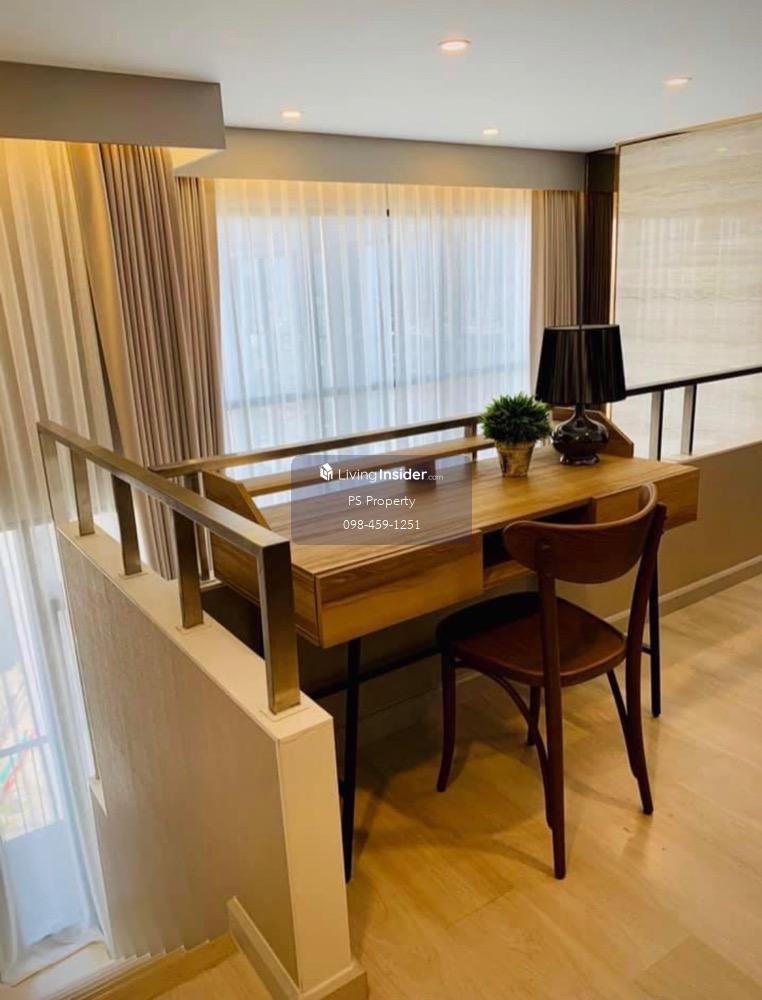 Price: 27,000 baht / month Size: 38 sqm. Floor: 28 Room type: Duplex Facilities: Convenience store, CCTV, key card Access, Swimming pool, Fitness Center, laundry room, 24hrs security guard, Furniture: