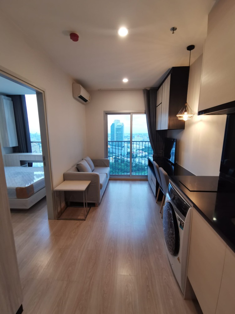 Code J27465 . Noble Revolve Ratchada for Rent MRT Cultural Center Station . •Neighborhood : Ratchada, Huai Khwang, Rama 9, Phetchaburi • Size : 26 spm • Bedroom : 1 • Bathroom : 1 • Floor : 30 • Furni