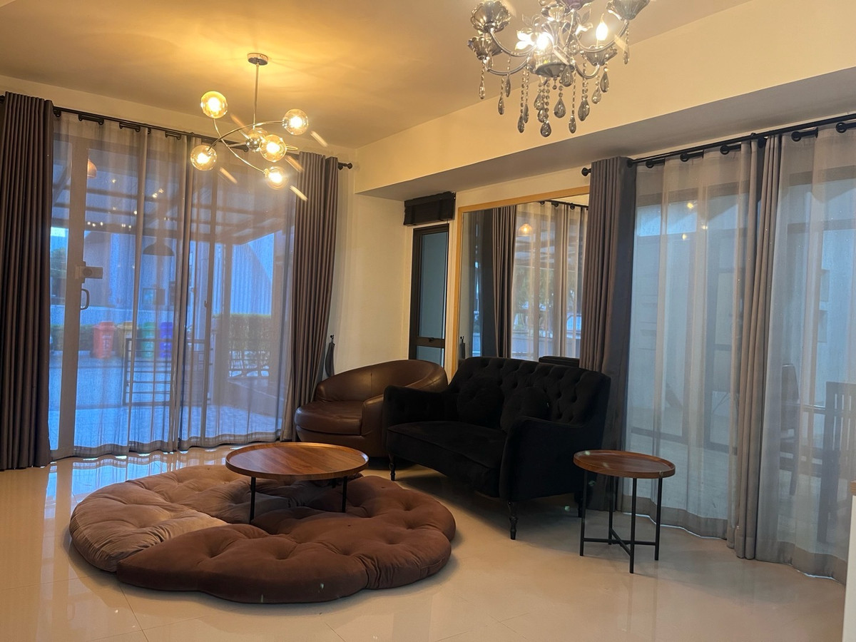 🚩Beautiful house, pool-garden view, area the same as a single house, PLENO Rama 9 - Krungthep Kreetha 1, next to the swimming pool, in front of the garden, very good view, facing south, cool breeze blowing. Usable area 310 square meters, 43.1 square wah, 5 bedrooms, 3 bathrooms, a living room, dance room, additional stargazing room, smart key door, anti-theft protection, European lamps, curtains, sun protection film, electrical appliances, sofa, complete, just carry your bags and move in. Very big house‼️The owner is selling it himself for 6.59 million, renting for 35,000 baht. Contact Khun O Tel. Contact number