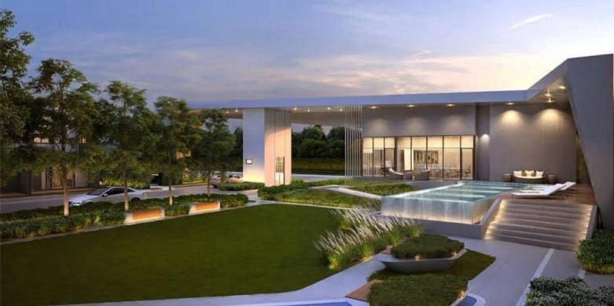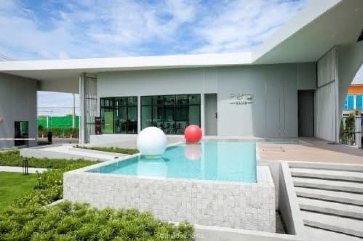 🚩Beautiful house, pool-garden view, area the same as a single house, PLENO Rama 9 - Krungthep Kreetha 1, next to the swimming pool, in front of the garden, very good view, facing south, cool breeze bl