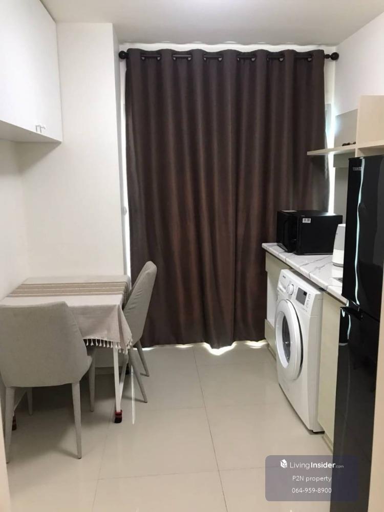 APL104 Condo for Rent, Aspire Ladprao 113, 7th floor, West-facing, 28 sq.m., 1 bedroom, 1 bathroom, 12,000 baht. Furniture and Appliances Included: - Bed with mattress - Wardrobe - Sofa - Dining table