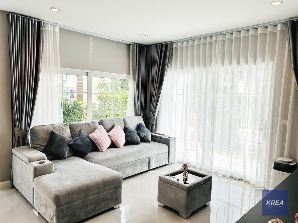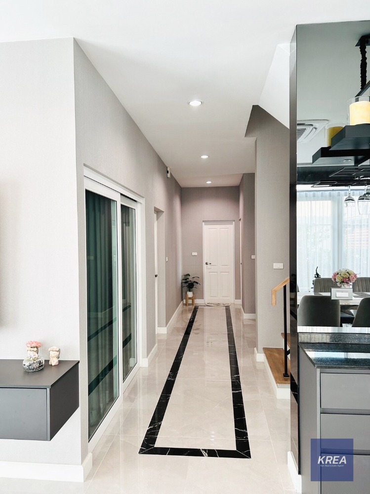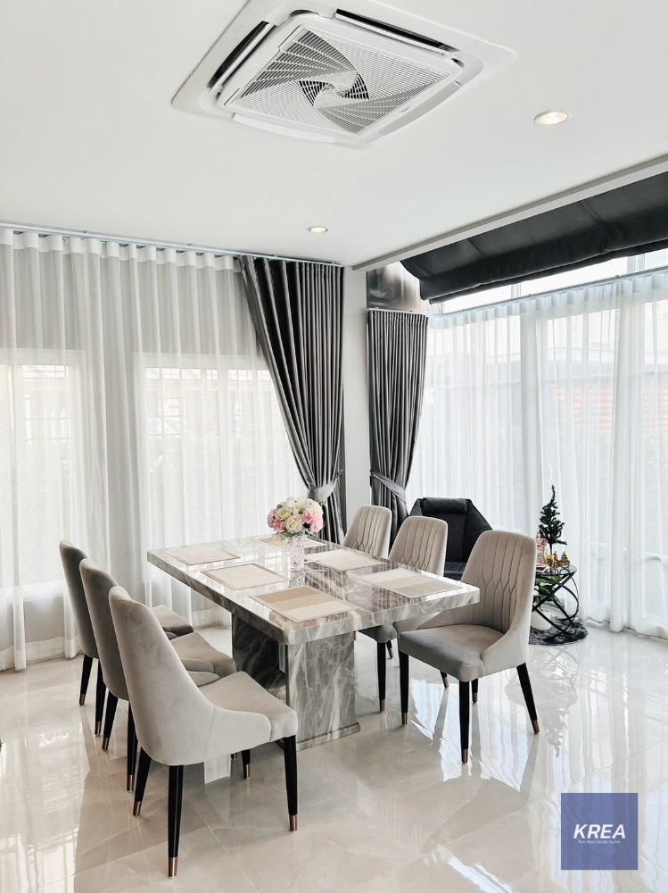 Renting out a 2-storey single house at Grandio Ramintra-Wongwaen project, with a living area of 220 square meters and land area of 68 square wah. It features 4 bedrooms, 4 bathrooms, 1 living room, 1 kitchen, and 1 laundry room. The entire house is fully furnished and equipped with electrical appliances. Details: - 4 bedrooms - 4 bathrooms - 1 living room - 1 kitchen - 1 laundry room - 3 parking spaces - Outdoor area - Living area: 220 square meters - Land area: 68 square wah In-house amenities include: - Two 6-foot beds - One sofa bed - 75-inch TV - Sofa in the living room - Genuine stone dining table with 6 seats - Bar counter - Decorative lamps and wine glass hangers - Two-door refrigerator (Samsung brand) - Curtains throughout the house - Ceramic tiles - Medium-sized refrigerator - Smoke extractor - 4-head electric stove - Oven - Bakery oven - Microwave - Kitchen appliances and dishes - Two washing machines - Korean pine trees as 1.8-meter-high fences around the house - Finger Scan door locks at 2 points of entry and 1 point in the master bedroom - Electric gate - 5 wall-mounted air conditioners - 4-directional air conditioner Project facilities include: - Security system - Guard patrol every 2 hours - Fitness center - Swimming pool - Public park - Clubhouse within 50 meters walking distance - Located on a wide and quiet street Rent: 80,000 Baht per month 1-year lease, 2-month security deposit, 1-month advance payment Nearby locations: - Chalong Rat Expressway (Chatuchak Interchange) - Benjamamrungsarit School - Sarasan Witthaya School - Sathit Pathumwan School - Ireland Fashion - The Promenade - Sinphat Medical Hospital - Phyathai Nawamin Hospital - Nopparat Hospital - Kasetsart University, Bangkhen Campus 📞 For further inquiries or to schedule a house viewing, please click to view the contact number. Contact Ko. ✅ You can also add on Line at "kohcocoa" 📌 Location: https://maps.app.goo.gl/J3D5M2dxKTvjDJFb9 ______________________________________________ Hello, my name is Koh. I am a professional real estate agent from Winner Estate Education Co., Ltd. We specialize in buying, selling, and leasing houses, condominiums, land, and other real estate properties. Here's what you'll get when you entrust us as your real estate agent: ✅ Free online and offline advertising! ✅ Selection of genuine and capable buyers. ✅ Assistance with loan applications. ✅ Preparation of transfer documents, analysis, and calculation of transfer expenses. ______________________________________________