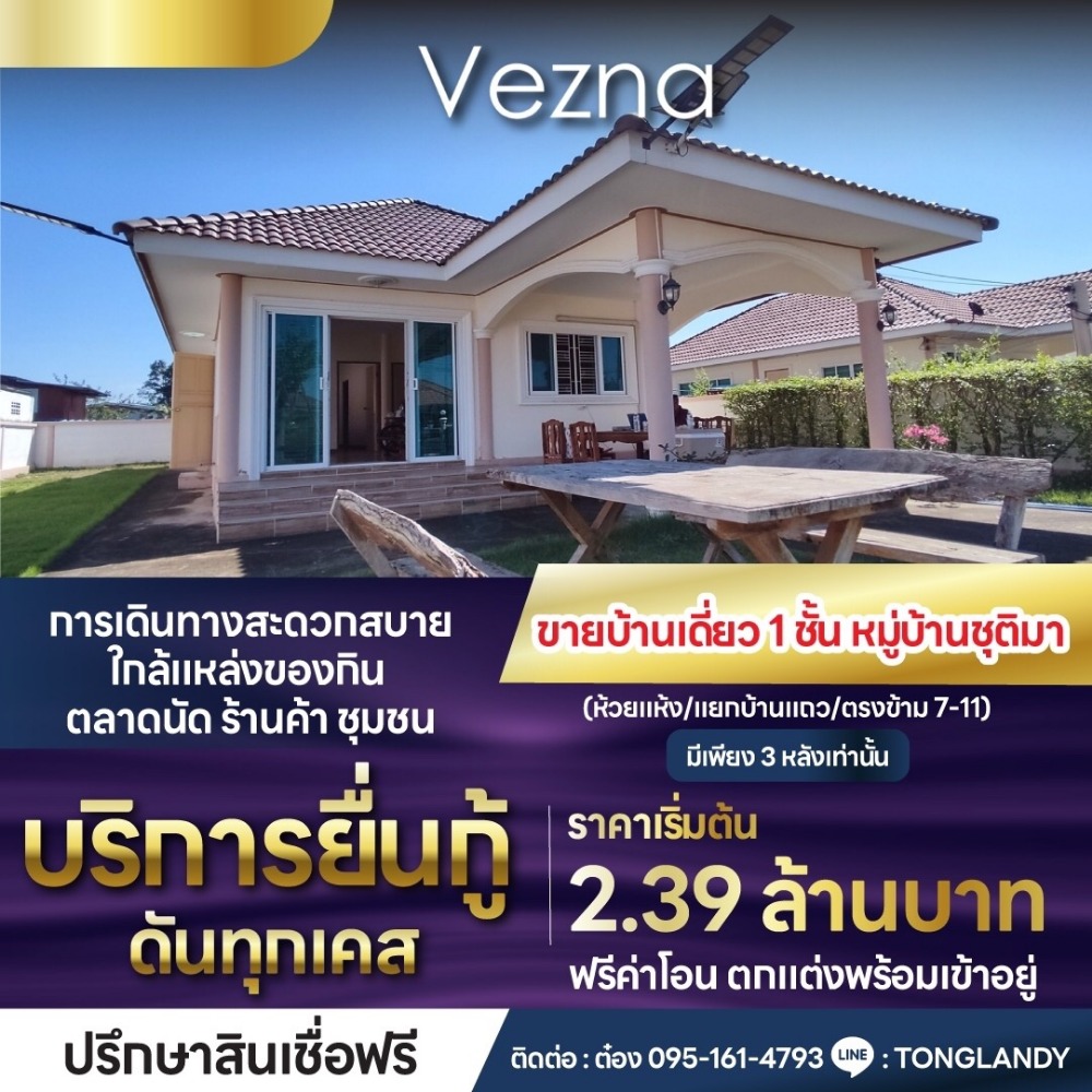 🏠✅For sale 1-story detached house for sale, Chutima Village. (Huai Dry/Baan Thaeo intersection/opposite 7-11) Starting price 2.39 million baht *Land 75 - 89 sq m., 3 bedrooms and 2 bedrooms to choose from. Maximum usable area 135 sq m Free transfer fee*#Convenient transportation Opposite 7- 11 Next to the community market. Food sources and restaurants Kasemrad Hospital 12 minutes, Huai Haeng Subdistrict Administrative Organization 3 minutes , Motorway entrance and exit point 10 minutes Gas station and bypass road 5 minutes, Rong Kluea Market, Kut Nok Plao 10 minutes , Robinson 12 minutes Lotus 15 minutes, Saraburi Bus Terminal 18 minutes , Saraburi City Hall 18 minutes #Loan consultation, free loan application, push every case Contact: Tong Contact number Id_line: tonglandy *********Ready to apply for a free loan********** Location https://maps.app.goo.gl/d6FrGwXVR9Z6HYfHA #Opposite 7-Eleven, #Baan Taew Market, #Robinson, #Lotus, #Kasemrad Hospital, #Rong Kluea Market, #Up Point Get off the motorway, #school, #sanitation, #bypass road, #Huai Haeng Subdistrict Administrative Organization --------------------------------------------note----* Free transfer fee only for some houses. *The land and usable area of each house are not equal