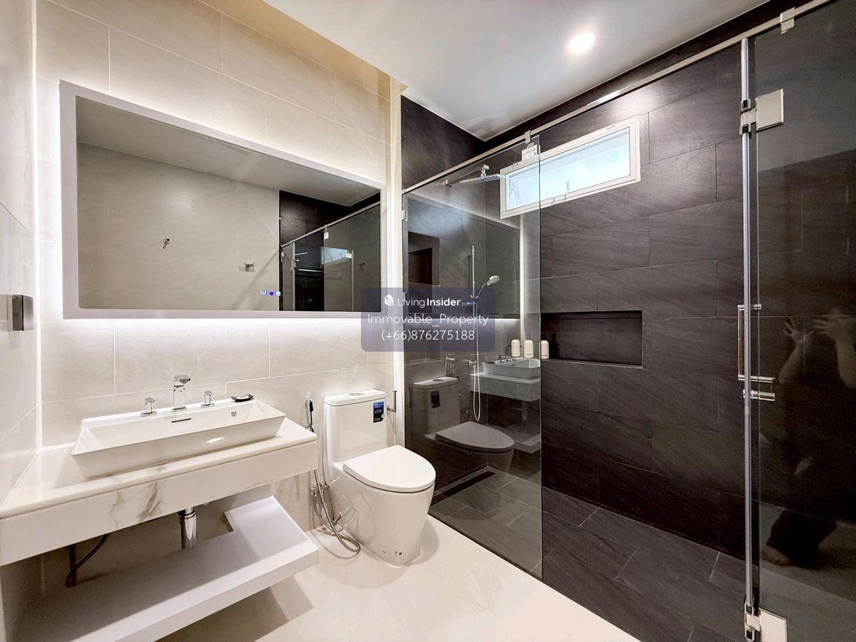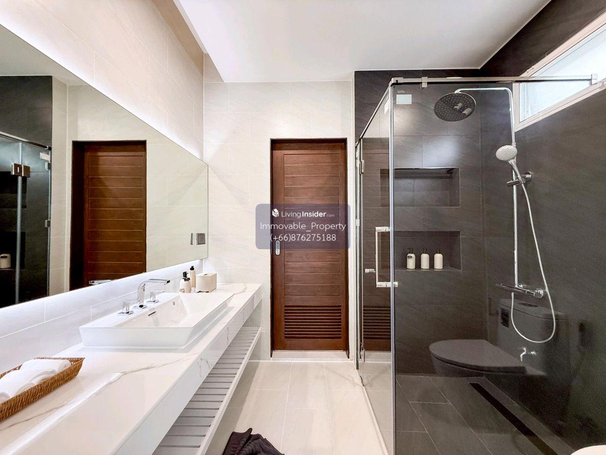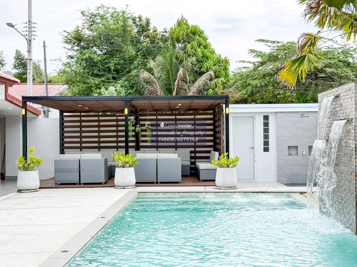 Private pool villa Manik, Cherntalay Thalang " Permsap Villa " 1 story detached house Area 145.8 sq m / 583.2 sq m. 4 bedrooms, 5 bathrooms, 2 parking spaces Complete electrical appliances and furniture Ready to move in blackout curtains / wooden blinds 3 TVs (65"/55") 6 air conditioners 8 CCTV cameras 4 water heaters Filter for Drinking water through a good filtration system. Refrigerator/Oven/Microwave/Electric stove/Dishwasher/Washing machine/Dryer Sofa / coffee table / dining table set automatic gate large postal box Tap water and well water Passed through the filter into the house Pool size 4*8 meters, depth 1.45 meters, overflow system / waterfall curtain / 6 spa jets / 4 pool lights Water tank 3,000 liters, underground side garden Opposite is a public park in the project. Security guard 24 hrs. Key card System Tennis court and communal swimming pool Common fee 860 baht/month Near Robinson Thalang 3 km. Head Start International School 2.5 km. Blue Tree Water Park Phuket 2.5 km. Manik Temple 700 meters