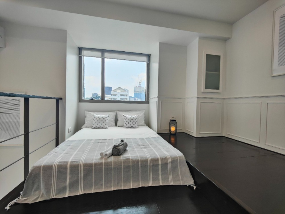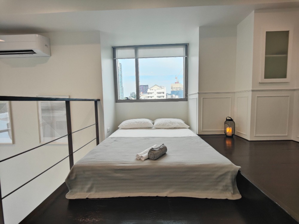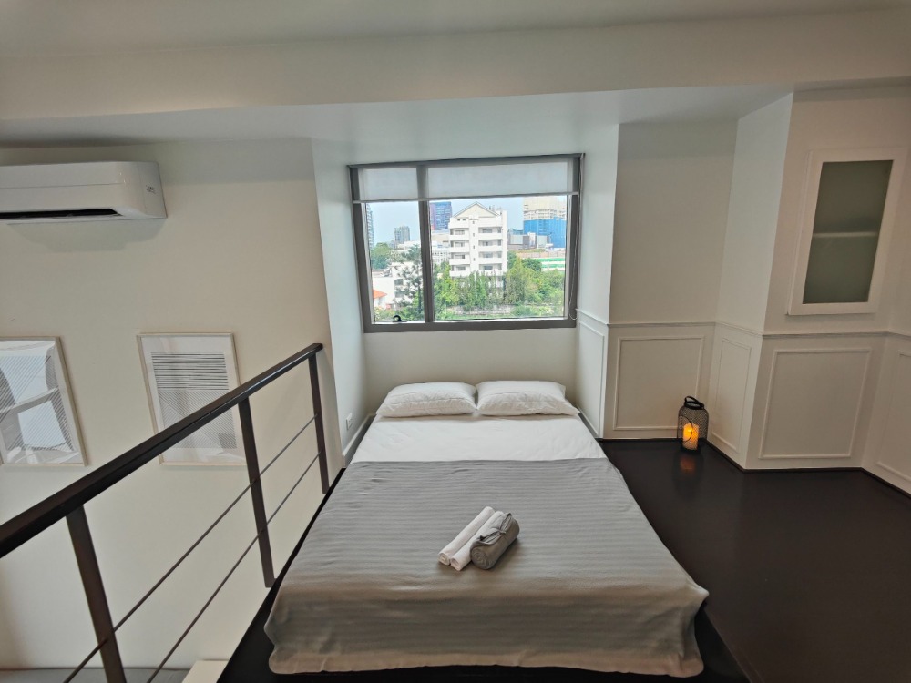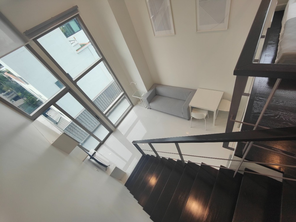 For Rent Ideo Morph 38 Pet friendly !!! Duplex room, 1 bathroom 3rd floor Size room 38.30 sq.m. / ceiling high 4.8 m. ** 1 year contract, 2 months deposit + 1 month advance ** Close to BTS Thonglor 40