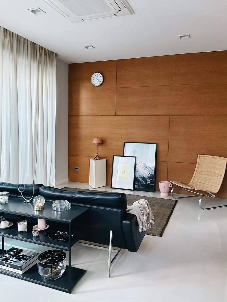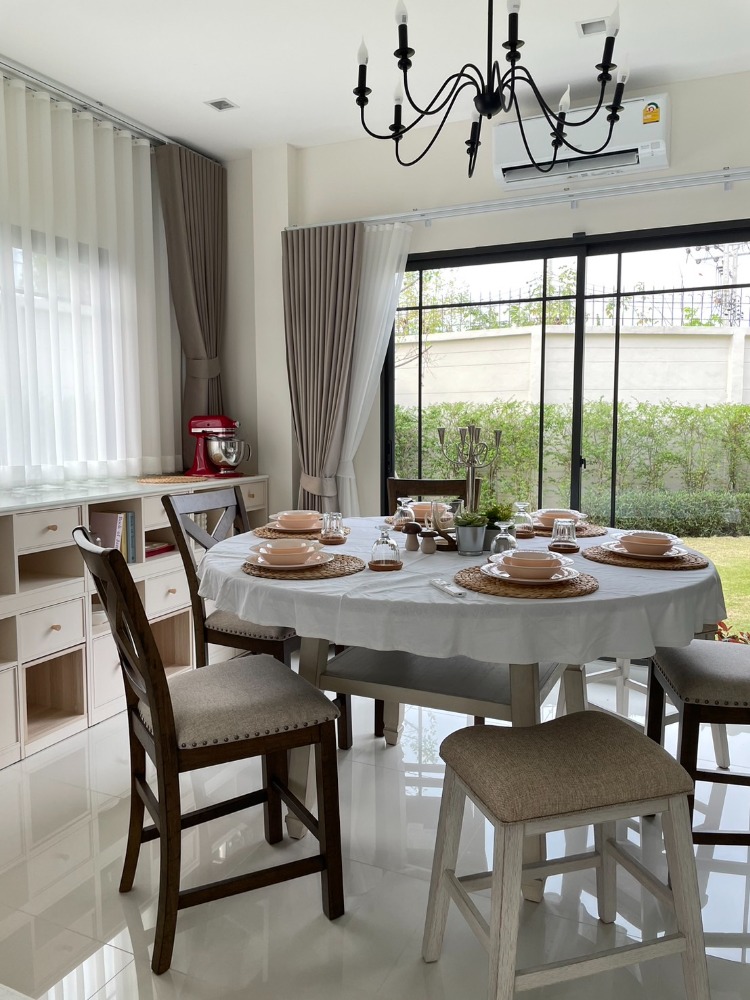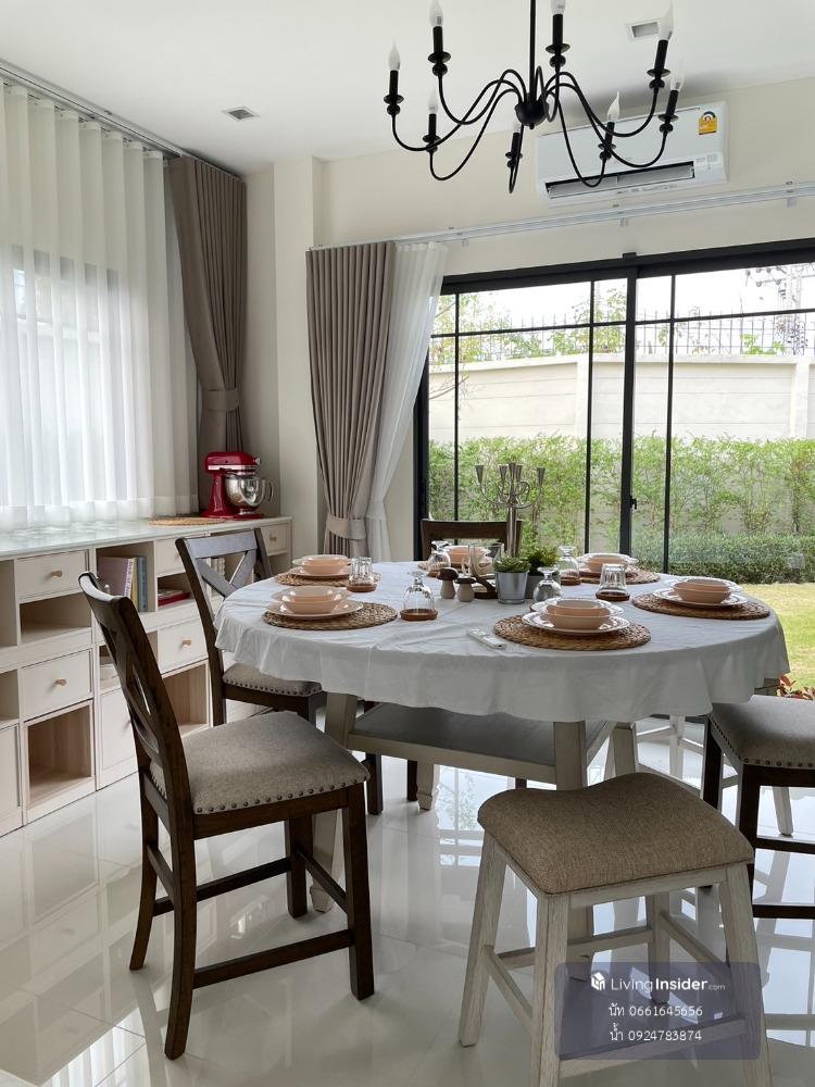 2-story detached house for sale, Private Nirvana Residence North project. 📌 Price 26.9 million baht • All transfer fee is half • This price includes all main pieces of furniture. Including many decorative items, just bring your bag and you can move in right away. 3 bedrooms, 4 bathrooms, 1 study room, 1 maid's room (with separate bathroom) Land size 63.2 sq.wa, usable area 260sqm Parking for 2 cars Garden area next to the house • Located in Soi Yothin Phatthana, next to Chic Republic / near Central East Ville, The Crystal Park, CDC and Huamum Market. Kaset Nawamin Intersection / near the expressway on Ekamai-Ramindra Road 📌 Highlights • The ground floor ceiling is 2.8 meters high, the upper level is 3 meters, with double volume at the entrance hall of the house connecting the ground floor and upper floors. Create airiness and comfort and connect family members. In front of the house is the garden of the project. Does not match other houses Get the most added privacy. • The house is located near the end of the project. (but not very deep) causing very little traffic passing in front of the house • The house is located near the village juristic person. • The village is very peaceful. cute neighbor never had a problem The house's walls are about 3 meters high, giving it privacy from neighbors. Can't see each other easily • Every bedroom has its own bathroom. for privacy And the book room on the ground floor is next to the guest bathroom. Can be converted into a bedroom for the elderly and the bathroom can be separated into an en-suite bathroom. • The bathtub is a Jacuzzi and many of the sanitary ware have been upgraded from those provided by the project. 📍 Decorate the house in a Mid-century Modern Scandinavian style (the owner selects every piece of furniture himself and designs the built-ins himself in detail at every point, using references from abroad to supplement). • Use imported furniture almost throughout the house. NAM (น้ำ) Contact number 🆔 line: alin_2428 NUT (ณัฐน์) Contact number 🆔 line Contact number