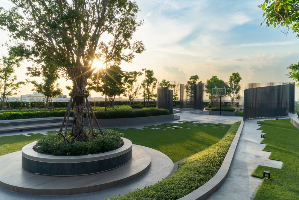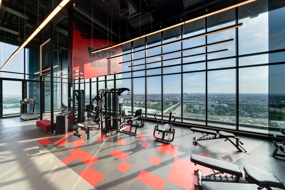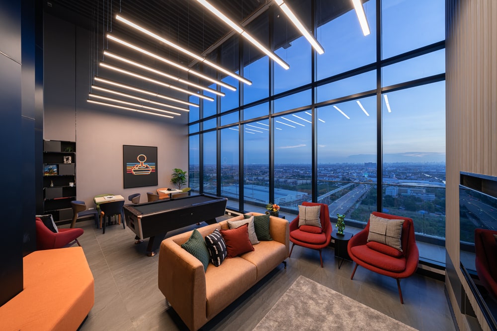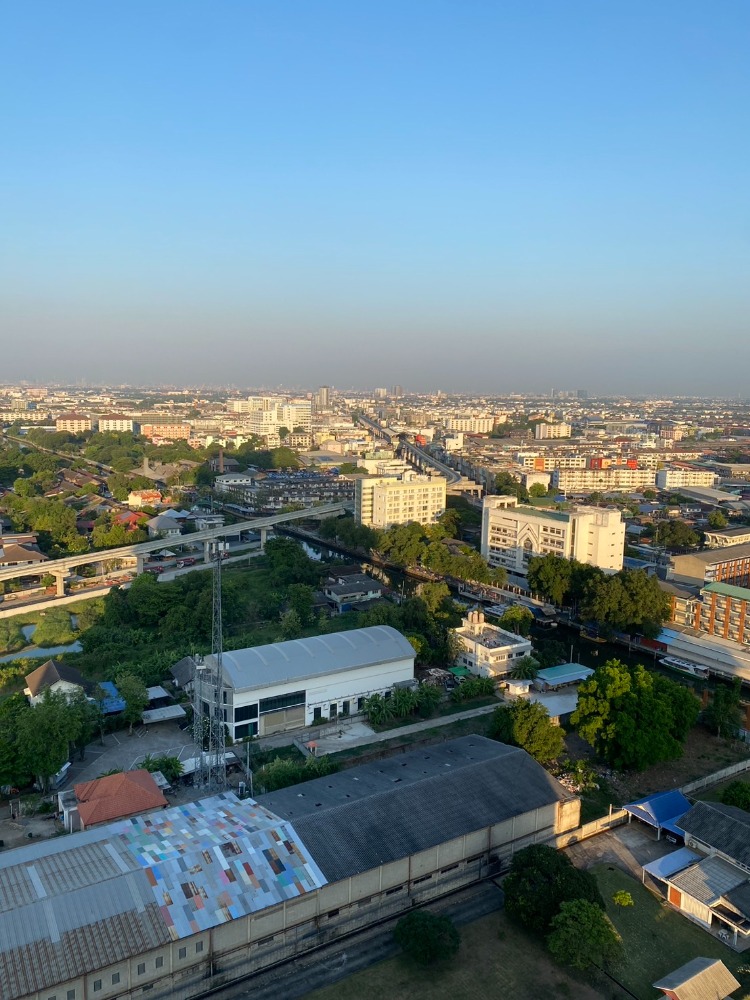 Condo for rent, Origin Ram 209, near the Pink Line, 600 meters distance or just 8 minutes walk, very convenient for traveling. The room is a separate kitchen. There are electrical appliances, refrigerator, microwave, water heater, air conditioner Cabinet, built-in bed, city view, good weather, fitness, swimming pool and co working space, home theater room.
