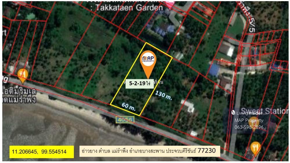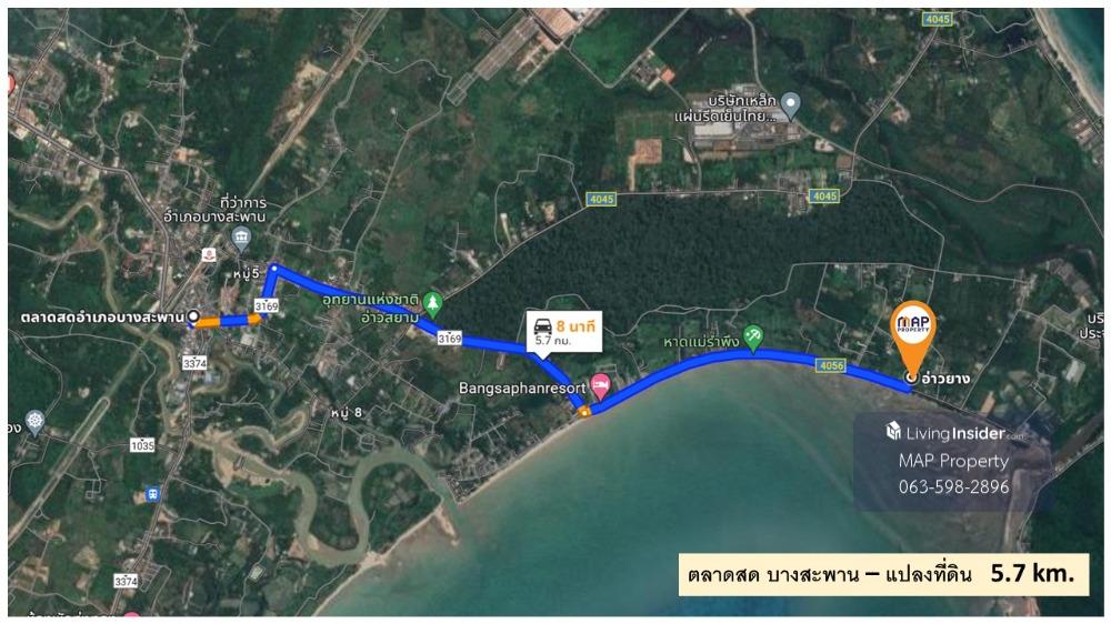 Contact Agent : Mr. Chansak 088.779.5655 Addline : https://line.me/ti/p/hIQ_UdzHL9 Beachfront land for sale 5 rai 2 ngan @ Ao Yang Bang Saphan - Land by the sea Beautiful rectangular shape, 5-2-19 rai
