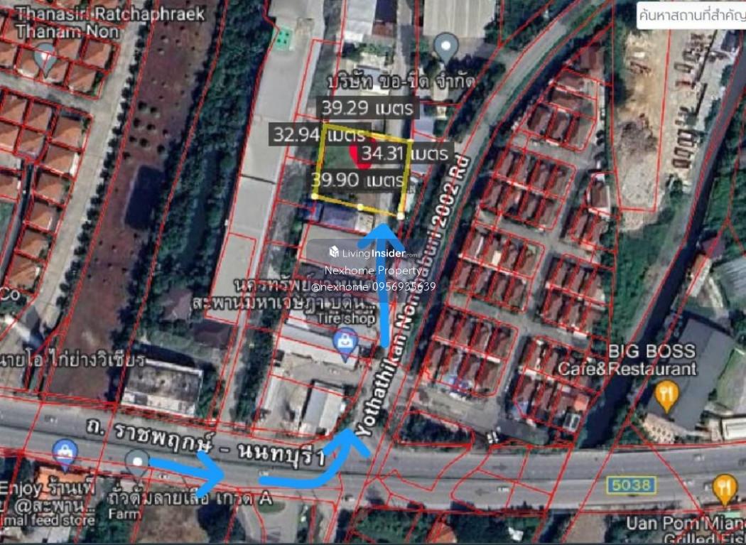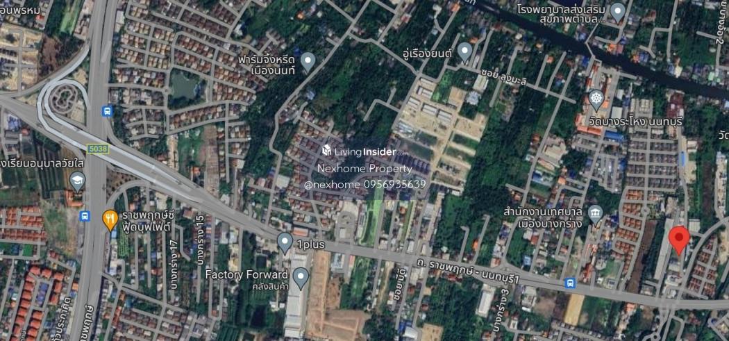 Land for rent, rectangular, already filled, land area 334.4 sq m, near Ratchaphruek-Nonthaburi Road. :: details :: - Size 334.4 sq m. :: Nearby places :: – Purple Line – Nonthaburi Pier – Villa Market