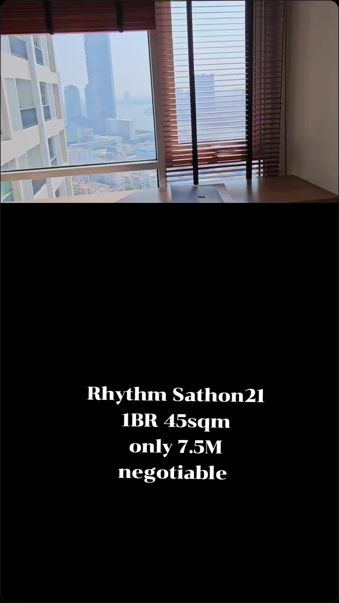 Rhythm Sathon 21 near BTS Taksin Station 300 meters - 1 bedroom size 45.5 sq m. North Building, 31st floor - The room is in new condition, the owner doesnt live there - the kitchen is separated from the living room. There is no disturbing cooking smell - Overlooking the curve of the Chao Phraya River and the Four Seasons Hotel - There is furniture, kitchen equipment, washing machine, refrigerator, air conditioner, complete and ready to move in. The kitchen is separated from the living room - Room next to fire escape staircase Get privacy - ready to move in Urgent sale condo Its convenient to travel anywhere, close to the BTS, easy to find things to eat, can invest, and its good to live on your own Selling at an inexpensive price Negotiable. If interested, chat or call