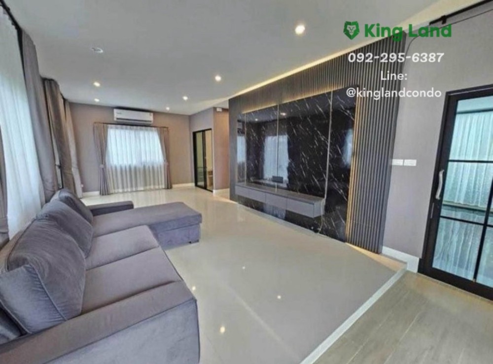 #2-storey house for rent, built-in, luxurious decorations Kanasiri Ratchaphruek 346 from Sansiri, Modern style on Ratchaphruek (new cut), Pathum Thani, 3 bedrooms, 1 glass room, can be made into a bedroom or living room, 2 bathrooms, parking for 2 cars. #Can raise pets, rent price 38,000/month Ratchaphruek Road, Bang Duea Subdistrict, Mueang Pathum Thani District, Pathum Thani Province Area 52 sq m, usable area 133 sq m. furniture ✅ Sofa ✅ Living area below built-in TV shelf ✅ Bed + mattress ✅ Refrigerator + kitchen counter ✅ Wardrobe + dressing table ✅ Washing machine Nearby coordinates📌 Central Plaza Westgate 18.1 km. Lotus North Ratchaphruek 8.9 km. HomePro Chaiyaphruek Branch 8.8 km. DBS International School 10 km. Ruamrudee International School 19 km. Sarasas Witaed Ratchaphruek School 4.5 km. Nawaminthrachinuthit School, Horwang, Nonthaburi 14.9 km. Rangsit University 23.1 km. Pathumthani Hospital 9.7 km. Pak Kret Hospital 14.1 km. Bang Khu Wat Health Station 17.7 km. Srisamarn Expressway 12 km. Chaengwattana Expressway 19 km. MRT Pak Kret 15.8 km. ------------------------------------ facilities -Clubhouse -Playground -Sansiri Backyard -Salt system swimming pool + children's pool -Fitness Room -Communal garden - Security guards 24 hours a day -KATSAN system -CCTV system at the entrance-exit of the project ============================= Ask for more information or make an appointment to view the house. 📞 Contact number ID Line : @Kinglandcondo (with @ also) #kinglandcondo #Kingland Condo #Single house for rent, New Ratchaphruek Road. #House for rent in Pak Kret #House for rent Pathum Thani #House for rent Rangsit #House for rent Nonthaburi #House for rent Bang Yai #House for rent Pathum Thani #Kanasiri Ratchaphruek346