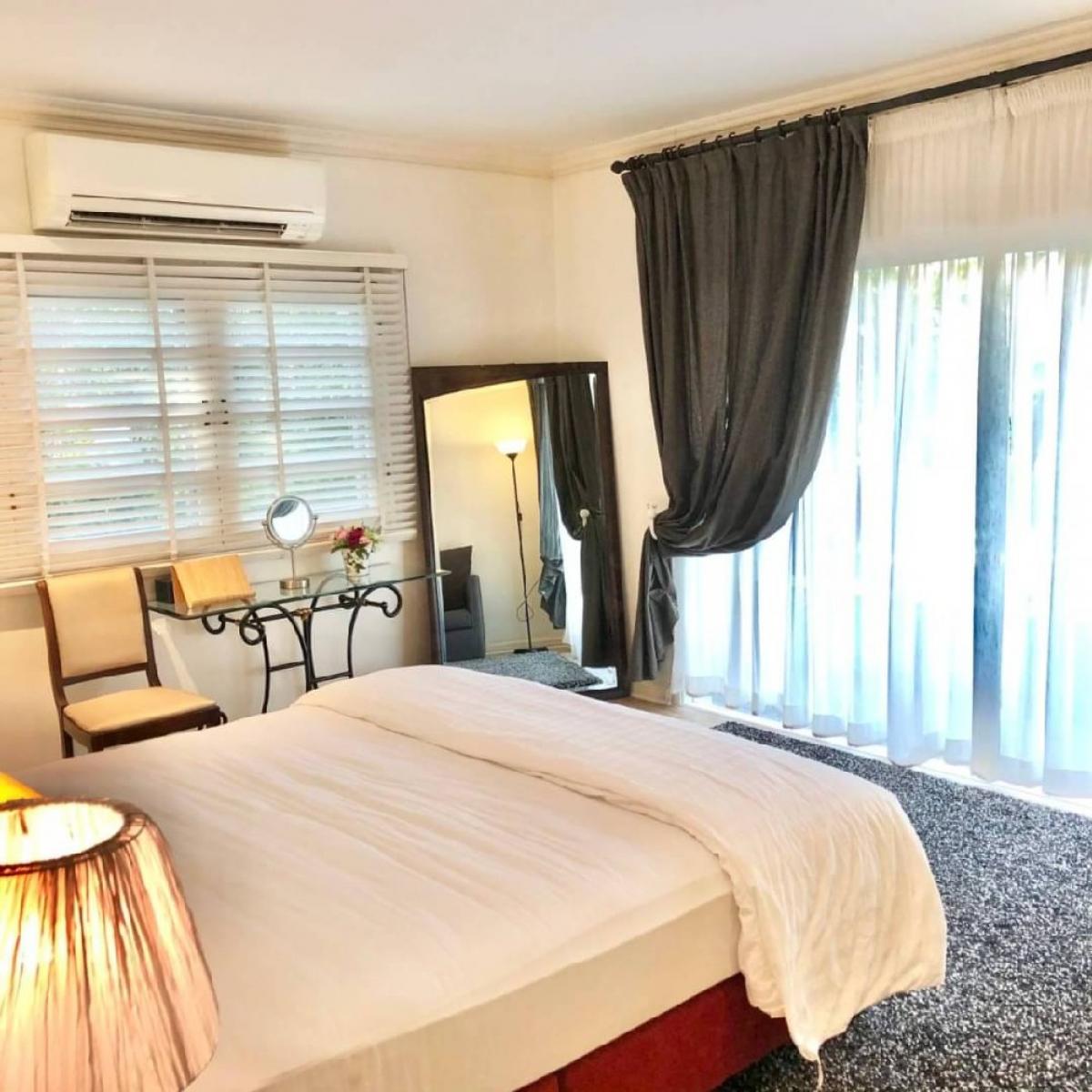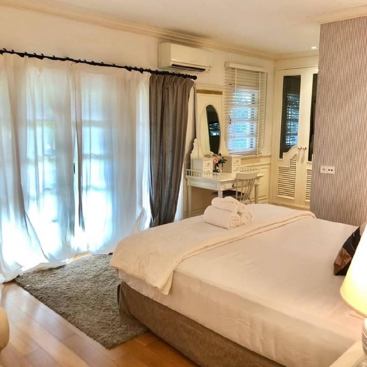 Private luxury house for rent, Villa Bangna - Trat km. 5, usable area 555 sq m 5 bedrooms, 5 bathrooms 1 maids room | storage | laundry | 2 kitchens, both western and eastern styles Spanish style house mixed in a green garden and lake Completely renovated, ready to move in Grade A+ environment, clubhouse, 25 meter swimming pool, 3 tennis courts, basketball, fitness, yoga, sauna | 24 hour security system and CCTV If interested, you can request additional photos or go see the room Rent: 350,000 baht/month, 1 year rental contract Rent 300,000 baht/month, 2 year rental contract, 2 months deposit in advance l 1 month Please contact​ :  Contact numberContact number Line​ id​         :  kn Contact number Click Link   :  https://line.me/ti/p/-2PejOBoP3 We chat      :   knluxeproperty