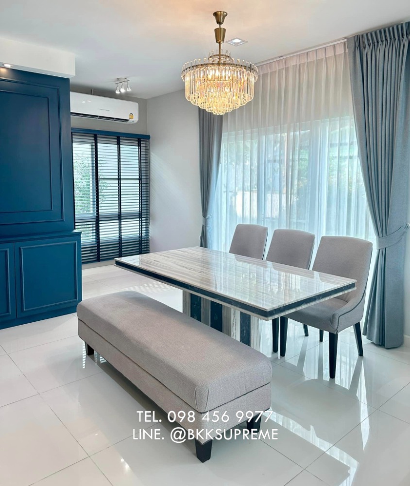 (For sale) ** Manthana Westgate, 2-story detached house near Central Westgate and the Purple Line ** ** Selling price 14.5 million baht ** Details #77060 • House type Multiply • Land area 70 sq m. • Usable area 222 sq m. • 4 bedrooms• 5 bathrooms • 1 maids room + separate bathroom • 2 parking spaces • Fully decorated with built-in furniture throughout the house location : Manthana Westgate https://maps.app.goo.gl/CPbtJxnVJ75h4iKYA * Compare prices or follow our other properties at https://www.bkksupreme.com/ 🍀 Contact for additional information Khun Bow : 0 9 8 - 4 5 6 - 9 9 7 7 LINE OA : @BKKSUPREME or click https://lin.ee/wjNzNjh