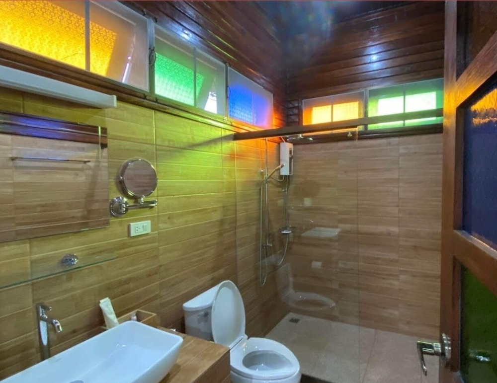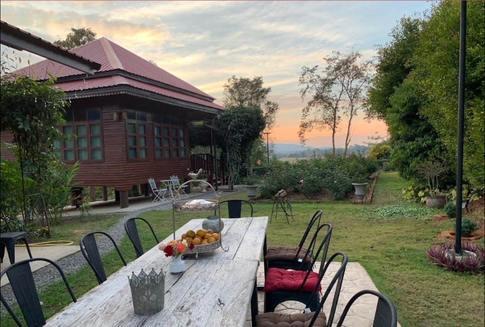 L081090 Land for sale with Baan Suan style vacation home, Phu Phiang, Nan Asset information Asset ID L081090 Type of property: Land Land size 4-3-40.60 rai Number of floors: 2 floors Parking for 3 cars Details Residential and usable house consists of 1. Large house, teak wood, two-step lid system. because of cooling Sleep comfortably at night. The upstairs has 2 bedrooms, each with its own bathroom. Install the water heater ready. The ground floor is a large hall. Western-style open kitchen with electric stove, oven, and dishwasher. small storage room There is a wide balcony to relax and admire the view. And there is a guest bathroom on the ground floor. Total usable area 196 sq m. 2. Guest house, teak wood, 2 floors, has 1 bedroom, 1 bathroom, and 1 living room. There is also a balcony for viewing the view. Usable area 49 sq m. (can be opened for guests to stay) 3. Thai kitchen outside the house uses a gas stove and has a bathroom for workers in the back. Can be converted into worker accommodation in the future. Usable area 36 sq m. 4. Shed and parking To store various tools and equipment, parking for 3 cars, usable area 72 sq m. 5. Electrical connection house And keep some garden equipment and fertilizer. 6. The water plant has 4 2000 liter tanks (8,000 liter water reserve) 7. Fertilizer greenhouse at the end of the garden You can compost manure and use it yourself with no problems with termites. Because the system has already been set up The garden can be developed into a resort or a coffee shop. Doing business in the future Because the view is very beautiful. An interesting highlight A semi-resort-style vacation home in Nan province. The view is very beautiful, a view of rice fields and mountains, next to a black road, on a hill, so there will definitely be no flooding problems. Got to sit and watch the sunset every day In the garden, there are fruits and many varieties of colorful roses are grown. Including fragrant Thai flowers around the house, including rare and expensive plants such as Myeik, Kipel, Ironwood, etc. The scent of the flowers is pleasing to the heart for most of the day. Water system: 1 large pond with 70 meter deep groundwater, 1 pond Facilities Parking in the building, parking outside the building Nearby places ⁃ Far from Nan city center. (Phumin Temple) not more than 5 kilometers ⁃ 2.3 kilometers from Phu Phiang District Government Center. - 1.8 kilometers from Phu Phiang Hospital