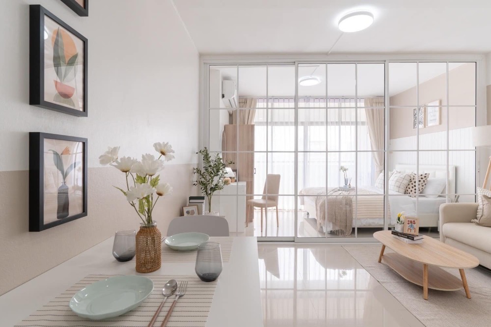 Urgent!!!!!! Near MRT Huai Khwang 7 minutes Separated rooms. Good price in the early millions Sap Kaew Tower Huai Khwang Room details - Size 30.28 sq m - 16th floor - Room type Studio, bedroom partiti