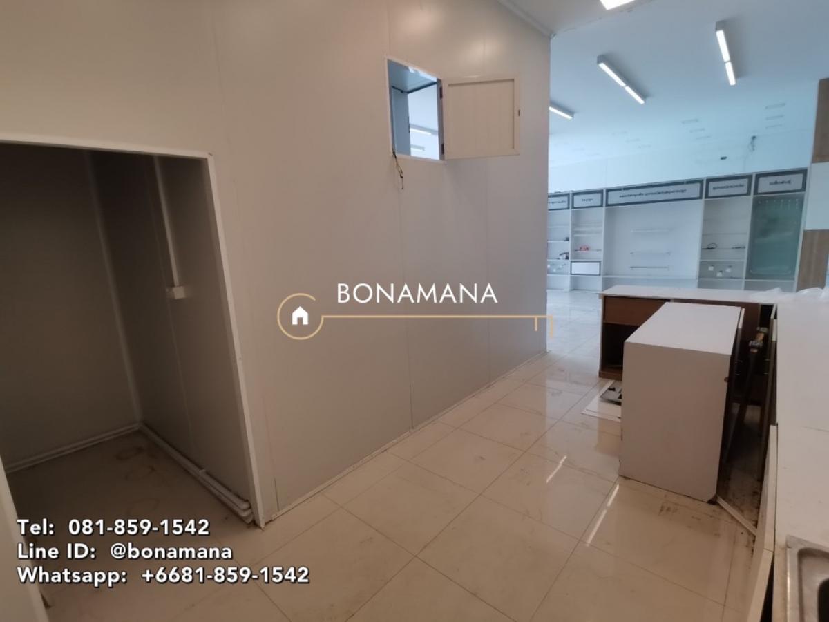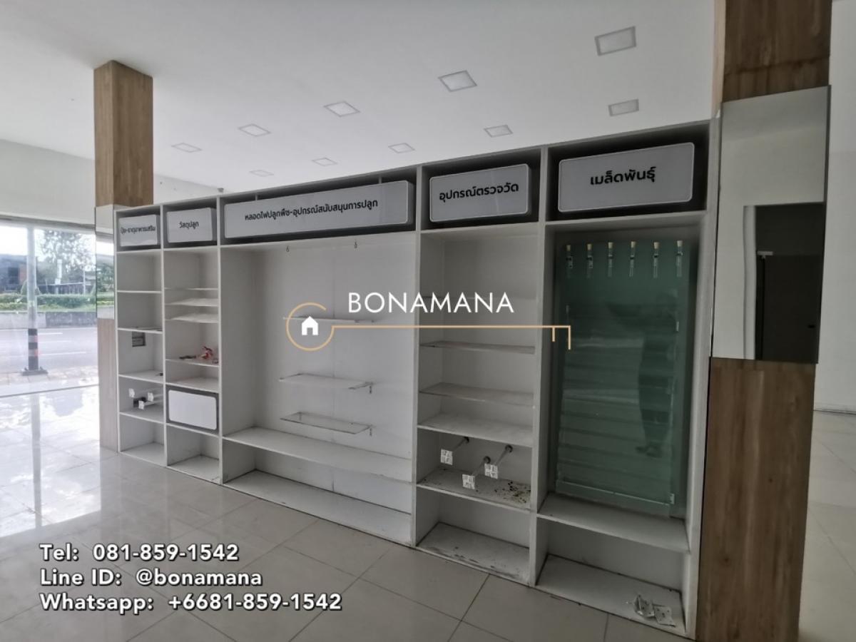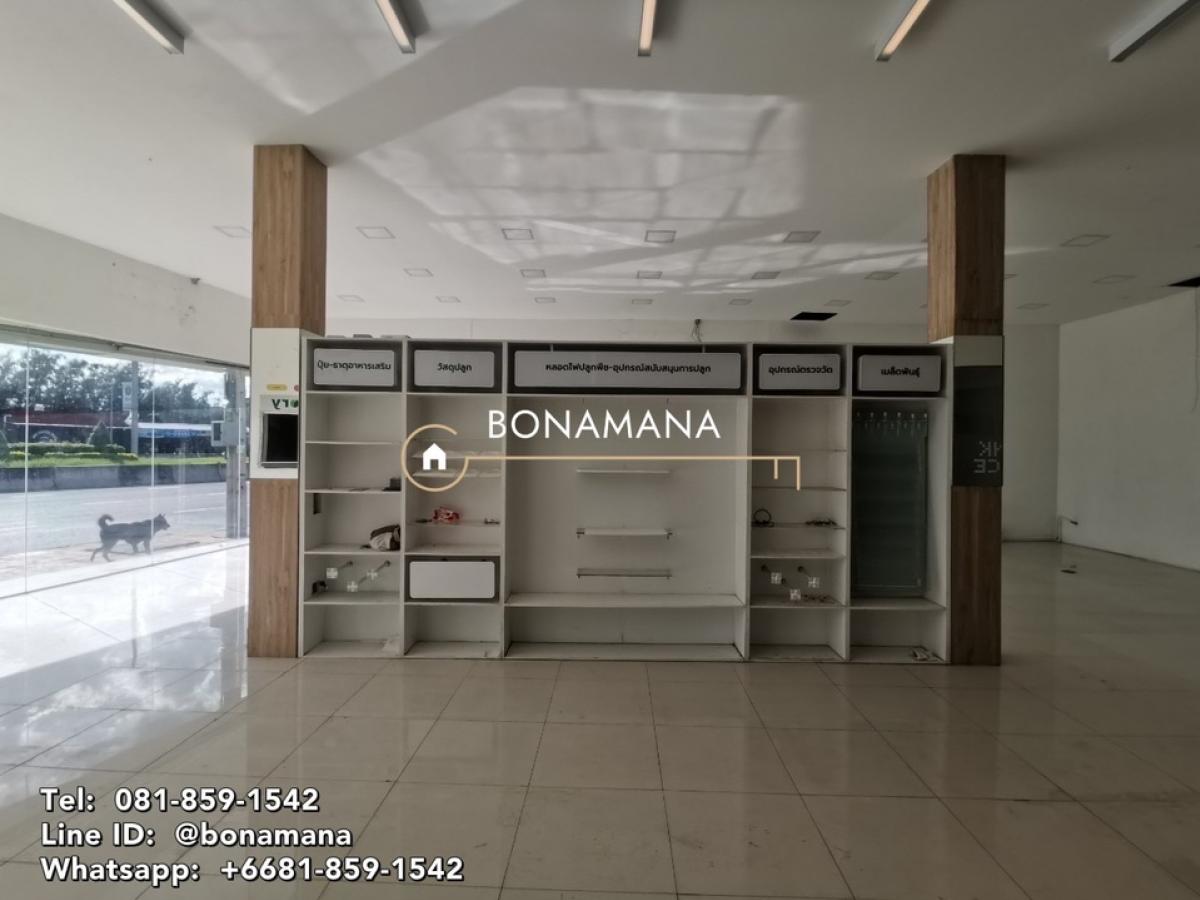 Showroom next to the main road, Kaset-Nawamin. Beautiful plot on the corner next to Prasert Manukit Road. The area is a showroom, warehouse and office. Usable area 1,000 sq m. Width 26.5 meters Depth 32.5 meters Details Interior decoration/ office room/ 2 bathrooms/ Kitchen counter/ workshop area/ water and electricity system Suitable for Furniture & Car Showroom/ Shop Office/ Clinic Rent 250,000 baht/ month Long term rental 3 + 3 years Deposit + insurance + first month's rent, total 7 months Please contact Khun Tang: Contact number Line ID: @bonamana Whatsapp: Contact number