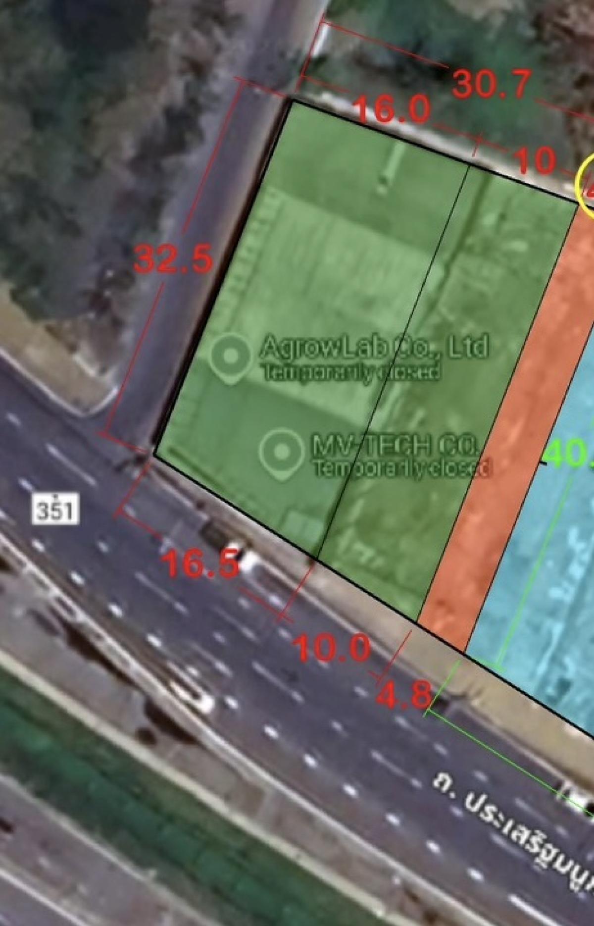 Showroom next to the main road, Kaset-Nawamin. Beautiful plot on the corner next to Prasert Manukit Road. The area is a showroom, warehouse and office. Usable area 1,000 sq m. Width 26.5 meters Depth