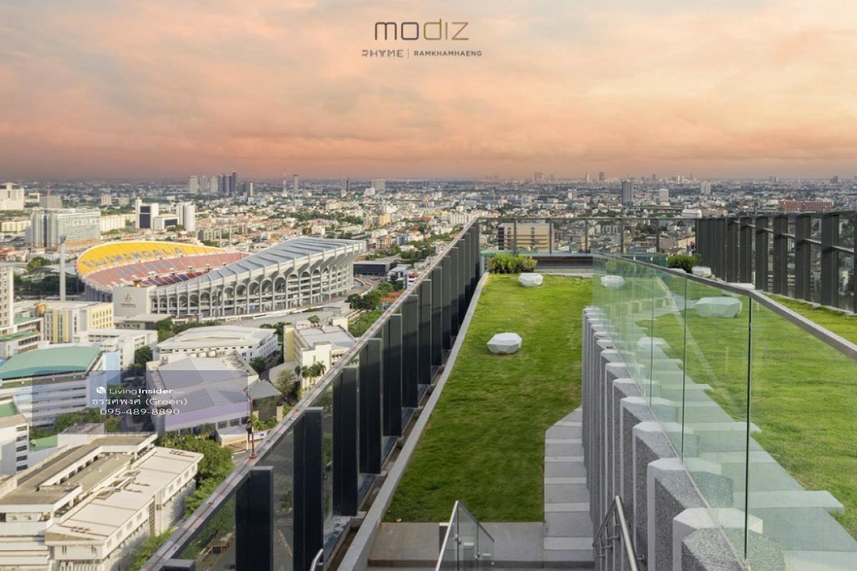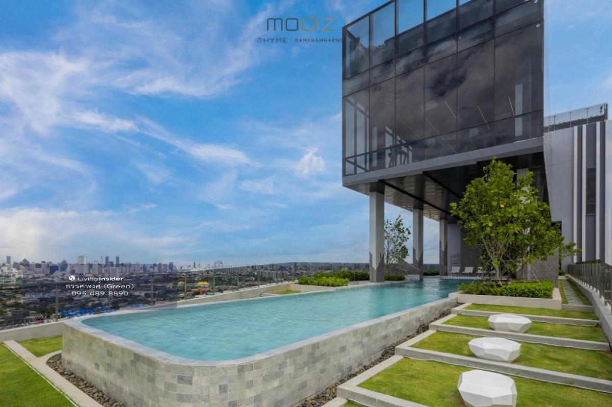 Modiz Rhyme Ramkhamhaeng 0 baht down payment, cheaper than renting, 80 meters from Ramkhamhaeng MRT Convenient transportation, big room, brand new Cheap installment 12,000 baht/month, cheaper than ren