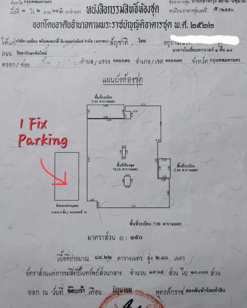 Owner selling himself, large room condo near Siam Paragon, 84 sq m., 2 bedrooms, 200m. to BTS Ratchathewi. With private parking Condo 84sqm Near Paragon 200m. BTS for Sale(FixParking)