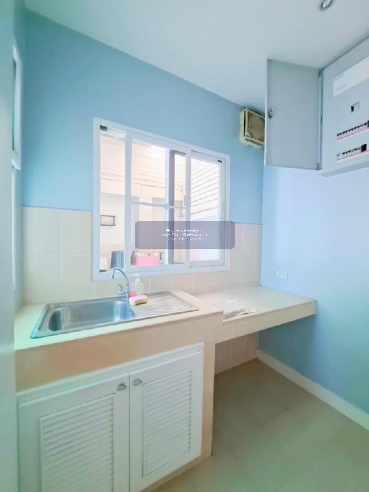 Townhome, beautiful, suitable for residence and office, community area 4 bedrooms, 4 bathrooms 6 air conditioners Outside and inside kitchens 1-year contract, rent 25,000 baht 2-year contract, rent 22