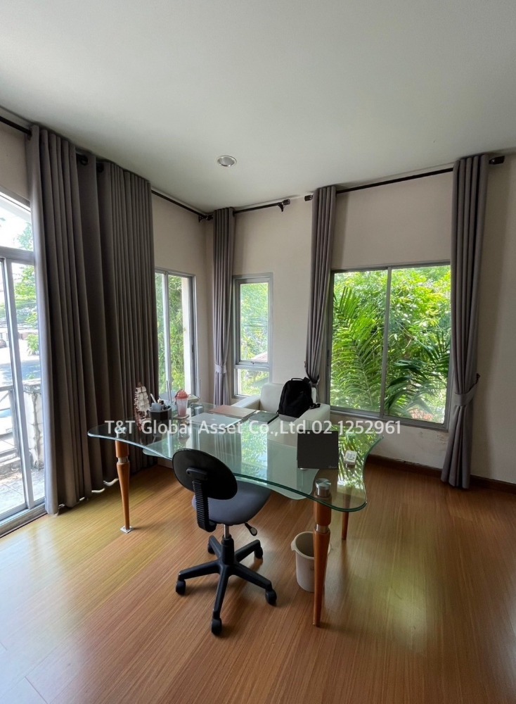 Location: Soi Krungthep Kreetha 7 (Suan Son), Ramkhamhaeng 60, Hua Mak Subdistrict, Bang Kapi District, Bangkok. Details: 3 bedrooms, 3 bathrooms, morning sun, breeze passing through, open and airy. The whole house is made of wrought iron, Built in SB furniture. Its a beautiful level playing house