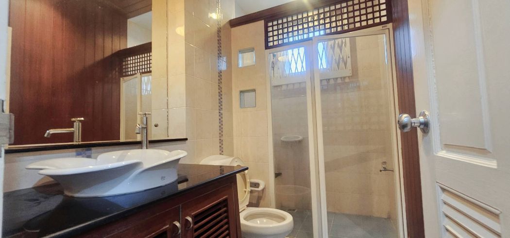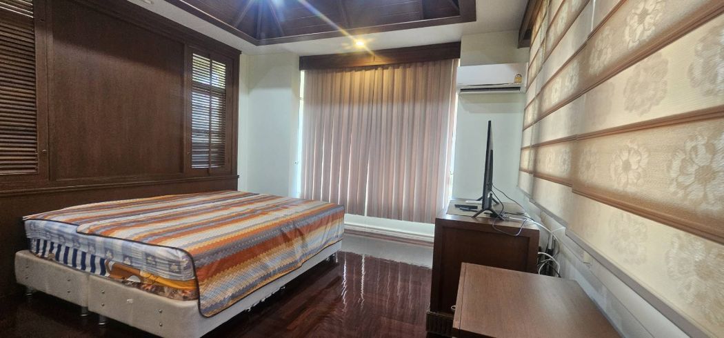 Single house for sale, Maneerin Lake & Park Ratchaphruek-Tiwanon, 99.9 sq.wah, Exclusive Lagoon zone, beautifully decorated, ready to move in. ::Highlights:: 1. The upper floor is covered with large, solid wood parquet flooring. Built-in decorative elements, such as wardrobes and tables in the bedrooms, use teak wood paneled with woven rattan. 2. Bed frame, high-quality mattress, and grade A Korean curtains. 3. Grade A roll-up mosquito nets with side storage. SD Open View burglar bars; all windows open and close with a single master key. 4. The house is in excellent condition, with built-in furniture made from grade A materials. 5. Parking available for 10 cars. ::details:: - Size 99.9 square wah - Type: 6 bedrooms, 4 bathrooms - 2 floors - The front door of the house faces south. ::Furniture List:: 1. The living room set, bed, mattress, wardrobe, and bedroom table are all made of solid wood. 2. Seven Mitsubishi air conditioners in new condition. 3. Grade A curtains from Korea. 4. Water heaters (3 units) ::Project Details:: Project Name: Maneerin Lake & Park Ratchaphruek-Tiwanon 1. There are two houses. The first house, purchased from the developer, is a two-story building with 4 bedrooms and 3 bathrooms. All amenities are located in this house. The second house, built entirely of teak wood, has 2 bedrooms and 1 bathroom and is an additional structure by the water, perfect for relaxation. 2. The large kitchen features stainless steel cabinets, water tank, and doors, along with a water pump and exhaust fan. 3. The ground floor is tiled with large tiles. The carport roof is made of BRILLIANT stainless steel. 4. There is a contract service for annual termite treatment. 5. There are CCTV cameras installed. 6. The monthly common area fee is 999 baht. 7. There is a clubhouse, fitness center, large swimming pool, playground, basketball court, public park with seating areas, a large lake, restaurants, beauty salon, pharmacy, 7-Eleven, and ATMs (BBL and SCB). Nearby places:: Srisaman Expressway, Kanchanaphisek Ring Road Expressway, MRT Ha Yaek Pak Kret Station, Robinson Department Store, Lotus's, Thai Watsadu, Rung Rueang Fresh Market, Bang Khu Wat Municipality, Chaeng Wattana Government Complex. Coordinates: https://maps.google.com/maps?q=13.95854,100.5032 Price: 8,500,000 baht Interested parties please contact: Amnuay Sriyota Contact number Line: Contact number Dedicated, sincere, and transparent in every step.
