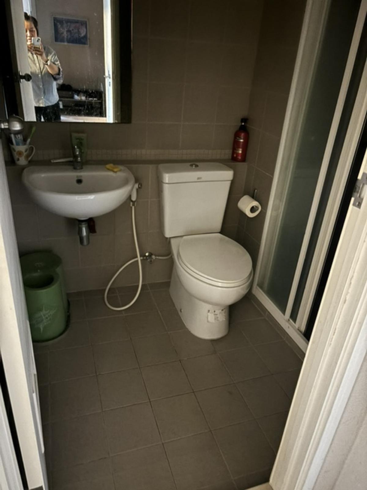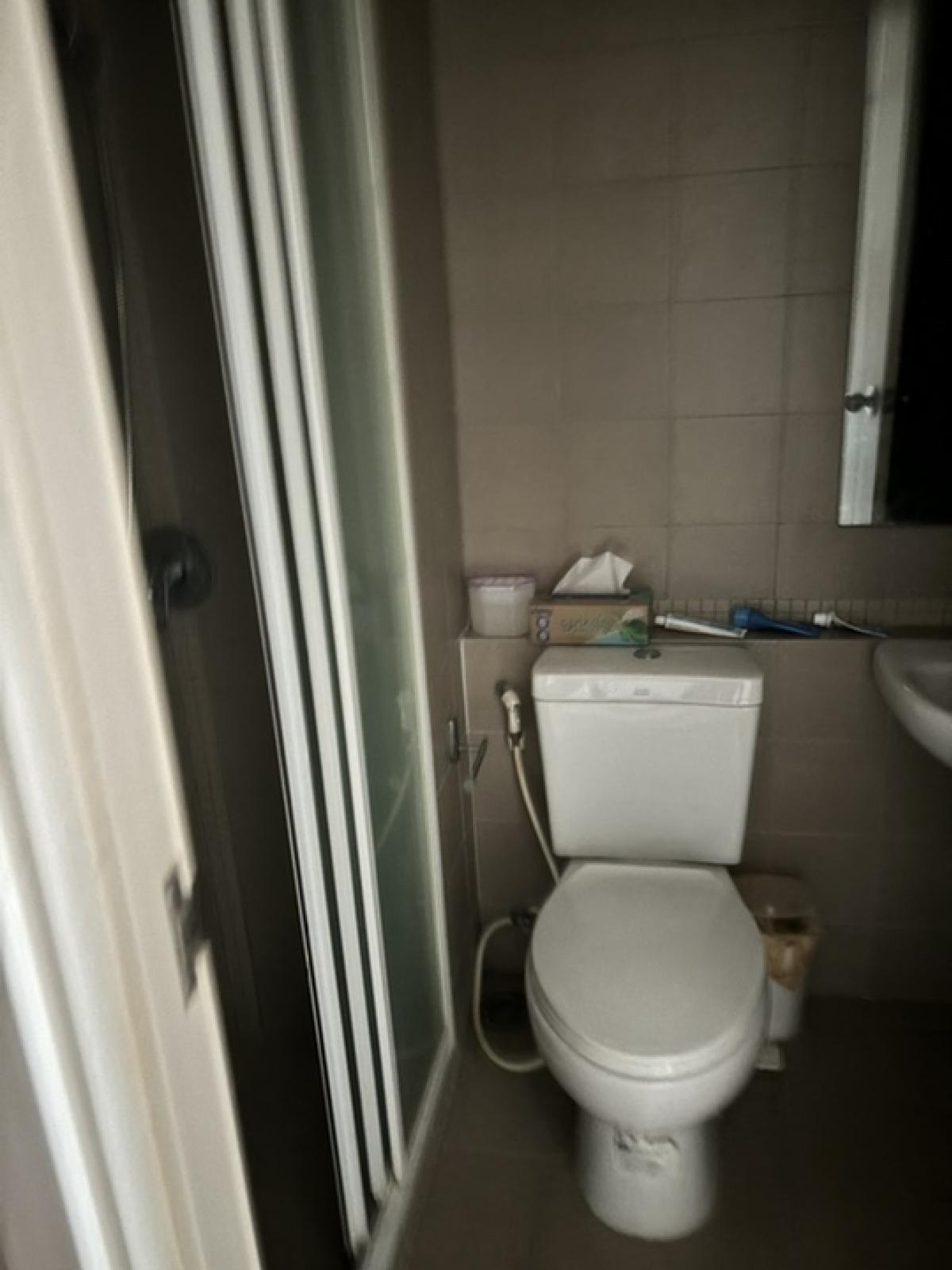 Condo for rent, 2 bedrooms, 2 bathrooms, with furniture , near Airport Link Ramkhamhaeng , Room 58/288, Floor 12A Building A, area 53.87, furnished , bed with mattress , 3 air conditioners , refrigera