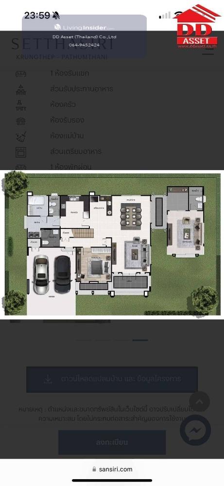 Single house for sale, Setthasiri Krungthep-Pathumthani project, corner house, view of Flora Ville golf course Code H8070 Property details: Single house, Setthasiri Project, Bangkok-Pathum Thani, golf course, view of the golf course from the house. Its a corner house, not next to anyone. There are only 2 houses in the alley. Theres a lawn where you can party ______________Selling price: 19,700,000 baht Area: 118.9 sq m Usable area: 324 sq m Size: 5 bedrooms, 5 bathrooms, 1 living room, 1 dining room, 1 kitchen. There is a food preparation section. Guesthouse with a view next to the golf course, 1 maids room Parking space: 4 cars**Furniture and electrical appliances: digital door lock, electric car charger, burglar alarm, electric gate, air conditioner , Built-in furniture ____________________Location: Bang Khu Wat Subdistrict, Mueang Pathum Thani District, Pathum Thani 12000 ____________________ Setthasiri Bangkok - Pathum Thani Project, detached house developed by SC Asset Corporation Public Company Limited, located on Bangkok-Pathum Thani Road. Project area 28-1-30.38 rai 3, divided into 83 units, with usable area 200-316 square meters, with a perfect life. On the golf course view ____________________Facilities : - Clubhouse - Salt water swimming pool - Fitness room - Public park - CCTV - 24 hour security system - Anti-theft alarm in the house with Magnetic & Shock sensor ___________________Nearby places : - Red Line MRT Don Mueang Station - Pathum Demonstration School, distance 7.6 kilometers - Nawaminthrachinuthit Horwang School, Nonthaburi - Phraharuthai Donmuang School - Big C Supercenter Pathum Thani - Robinson Srisamarn - Tesco Lotus Pathum Thani - Pathum Thani Hospital - next to Floraville Golf and Country Club (Chuan Chuen) - Next to Denla International School - near Harrow International, International ISB ____________________ Ask for more details and make an appointment to view at Line : @ddassetthailandhttps://lin.ee/Pqh1kgG office : Contact number (Khun Dai) Office: Contact number (Khun Pen) (A) See more other properties. www.ddasset.co.th Like the page https://www.facebook.com/ddassetthailand/ DD Asset (Thailand) Co., Ltd. Accepting sales, deposits, mortgages, rents, houses, land, condos, all types of real estate #DDAsset #House for sale #Condo #1st hand house #2nd hand house #Second hand house for sale #House for sale #Second hand house #Single house #Factory #Land #Setthasiri Krungthep-Pathumthani #Setthasiri Krungthep-Pathumthani #Pathum Thani