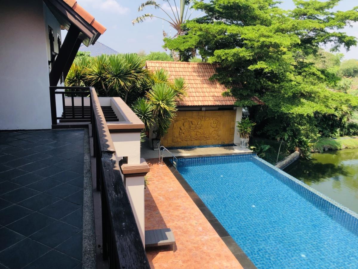 ✅MT073: Single house for sale, riverside, on 2 rai of land, next to the Khlong Si Sa Chorakhe Noi, near Suvarnabhumi Airport, good location, convenient transportation, next to the motorway Usable area 670 sq m. 4 bedrooms, 5 bathrooms, 1 study room, 1 living room, multipurpose room, Thai + Western kitchen, maids room, swimming pool, large fish pond, built-in decoration inside, beautiful house in good condition, shady atmosphere, quiet, planted with many types of trees, ready to move in, the owner takes very good care of the house, can park many cars Travel: On Nut-Lat Krabang Road, parallel to the Bangkok-Chonburi motorway There is a shortcut to Bangna-Trad Road easily, no traffic jams Nearby places: - Suvarnabhumi Airport - ABAC Bangna College - Huachiew Chalermprakiet University - King Mongkuts University of Technology Thonburi, Ladkrabang - Premium Outlet Lat Krabang - Robinson Lat Krabang - Mega Bangna Urgent sale, price 35,000,000 baht, house ready to transfer *Interested in making an appointment to view or asking for more information Call Contact number (Mon) ID Lind : monthap #Professional broker Loan procurement service, accepting sales and rentals of houses and land and accepting sales and deposits of houses and land in Bangkok and its vicinity #House for sale #Land for sale #Small land plot #Rent #Warehouse #Warehouse for rent #Bang Sao Thong #ABAC Bangna #Bang Phli #Bang Bo #Bangna #On Nut - Lat Krabang
