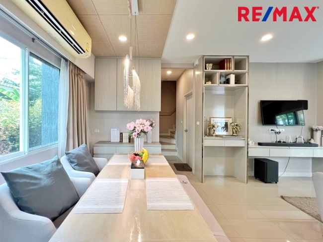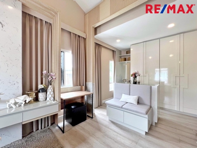 Code: 017458 Normal price: 6,500,000.00 Brief details: 2-story detached house, 3 bedrooms, 2 bathrooms, 2 parking spaces, meeting the needs of modern families. This house is a sample house decorated with built-in furniture throughout, Modern Luxury style, using cream-gold tones. Its easy on the eyes when looking at it. Makes the house look open and airy, comes with Sky Terrace, an extra large balcony Full details : Type : Single house Height : 2 floors Project : Perfect Park Suvarnabhumi 5 Location: Romklao Road, Soi Romklao 6/1, Minburi Subdistrict, Minburi District, Bangkok 10510 Land area: 54.2 sq m. Usable area: 120 sq m Number of rooms: 3 bedrooms, 2 bathrooms, 1 living room, 1 kitchen, 2 parking spaces Property front direction: North Year built: 2018 (3 years) Location: Saphan Sung / Minburi / Lat Krabang House details -Land 54.2 square wah -Usable area 120 square meters -3 bedrooms, 2 bathrooms, 1 living room, 1 kitchen, 2 parking spaces -Year completed: 2018 (3 years) 1st floor -Reception hall comes with built-in TV shelf and shelves, 4 seat sofa set, center table and side table, large rug and Install air conditioner -Dining corner comes with a built-in multi-purpose counter and storage shelves, dining table for 4 seats, wall lamp. -Separate kitchen with closed door to prevent smoke odors, built-in L-shaped kitchen counter with 2-burner gas stove, range hood and sink, backsplash and apron wall installed. -Bathroom comes with shower 2nd floor - 2nd floor hall has a multi-purpose corner design, 2 seats and shelves -The Master Bedroom can comfortably fit a 6-foot bed. Comes with a built-in headboard and TV shelf, a corner for working or reading, and in the walk-in closet there is a cabinet for storing jewelry and a built-in seat. Wardrobe and dressing table, Master Bedroom comes with Sky Terrace, an extra large balcony. Bedroom 2 can comfortably accommodate a 5-foot bed. Place a TV corner at the foot of the bed, comes with a built-in wardrobe and a multi-purpose corner. -Add features to the head of the bed with sliding doors that can be moved to close and open. to receive light -Bedroom 2 can place a 3.5 foot bed, place a TV corner at the foot of the bed, comes with a built-in wardrobe and a multi-purpose corner. Add features to the head of the bed with sliding doors that can be moved to close and open. to receive light -The 2nd floor bathroom is shared by all 3 bedrooms and has a door connecting from the Master Bedroom. The bathroom is divided into wet zones and dry zones, separated by a full sliding glass door, equipped with a water heater and a hand shower and rain shower. Area around the house - This house is a corner house, so there is space around the house. Can be extended or adjusted to be a multi-purpose space according to needs. Or use it as a green space, it can be very refreshing - Add a roof to the garage to cover the entire area - Add a roof around the front door of the house - Add a clear roof on the side of the house. Washing area -Add Shera wood flooring to the side of the house as a living area. Ready to install ceiling fan -Install CCTV cameras in the parking garage , facilities and security system -Club House-Salt system swimming pool -Sauna -Outdoor Jet Pool -Fitness Panoramic View -Aerobic Room -Spa Pavilion -Entire security system 3 levels -Closed Circuit Television (CCTV)-Smart Home Security -Security Guard 24 hours a day Location highlight -Near Airport Link and Suvarnabhumi Airport -Answer travel needs It is a connecting point to Suvarnabhumi Airport and the Special Economic Zone (ECC). Traveling into the city center is convenient with both the skytrain and mass transit. Near the Interchange BTS station (Orange and Pink Lines) only 2.3 km. -Near the motorway and Kanchanaphisek Road Connects many main roads Transportation -Romklao Road, King Kaew, Lat Krabang, Suvarnabhumi - Suwinthawong Road, Hathairat, Nimitmai, Khlong Sam Wa -Ramkhamhaeng Road, Seri Thai, Ramintra-Srinakarin Road - Romklao, used as a shortcut to Kanchanaphisek Road, Krungthep Kreetha, Ramkhamhaeng Road - Orange Line Electric Train - Pink Line Electric Train - Airport Link Lat Krabang - Motorway Bangkok-Chonburi Nearby important places Supermarket -Big-C Romklao -Big-C Sukhapiban 3 -Tesco Lotus Sukhapiban 3 Shopping center -Fashion Island -The Promenade -The Shopping Center Pacio Resting place Siam Park - Kwan Riam Floating Market Educational institution - Rattanakosin Sompot Ladkrabang School - Triam Udom Suksa Pattanakarn Suvarnabhumi School - Panchasap Minburi School - Triam Udom Suksa Nomklao School - Debsirin Romklao School - Sarasas Witaed Romklao School -Nawaminthrachinuthit School Triamudom Suksa Nomklao - Sarasas Witaed Minburi School -Kasem Bundit University, Romklao Campus Hospitals - Karunwet Sukhapiban 3 Hospital - Serirak Hospital - Nawamin Hospital - Nawamin 9 Hospital - Nopparat Rajathani Hospital Google Maps -maps.app.goo.gl/kCuuEHupY17fwQ2e7 You can see additional details of other properties at -https://www.greenwayproperty.co.th/ Employee name Ms. Orapan Kraithong (May) Mobile phone Contact number Office phone Contact number, Contact number LINE ID oraphan.ktE-mail Contact email