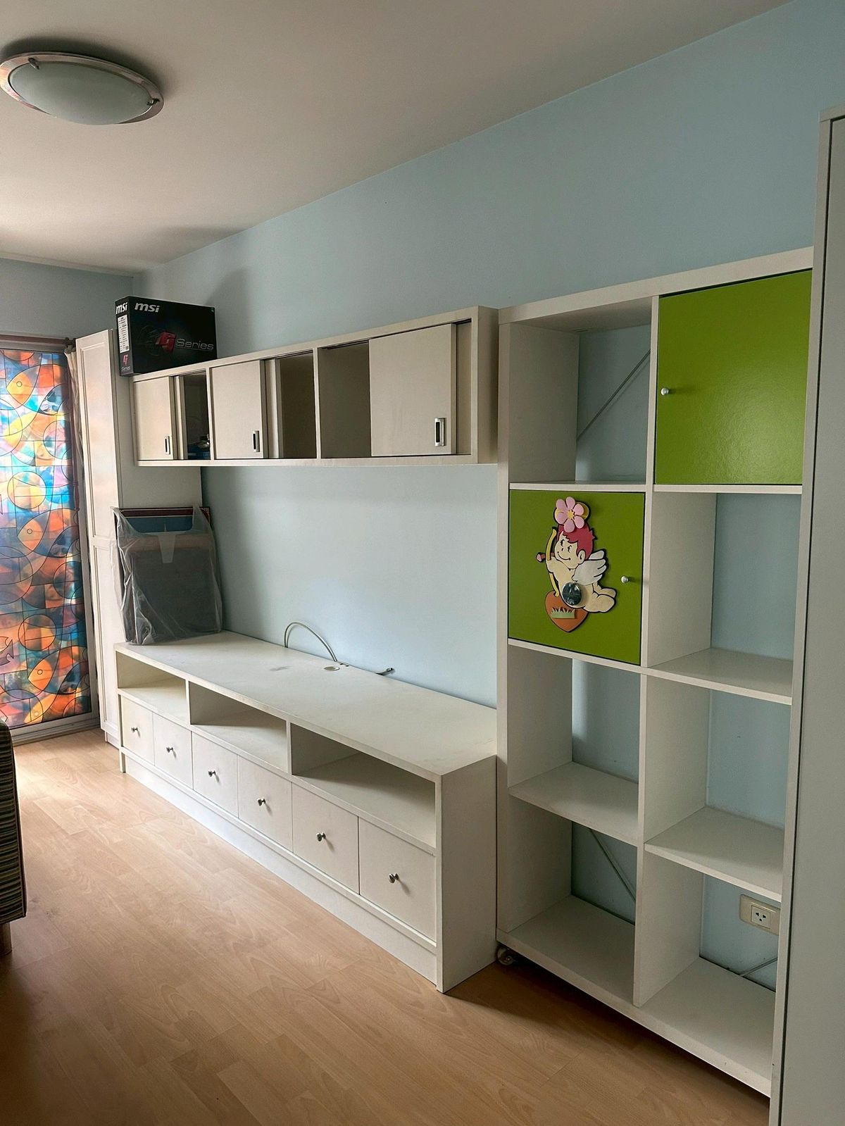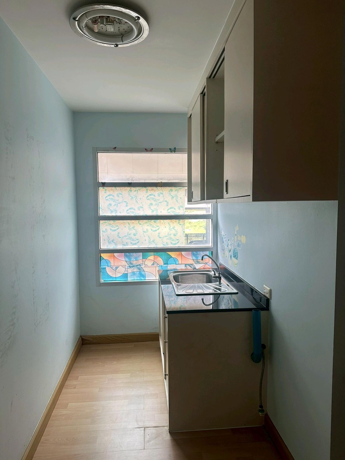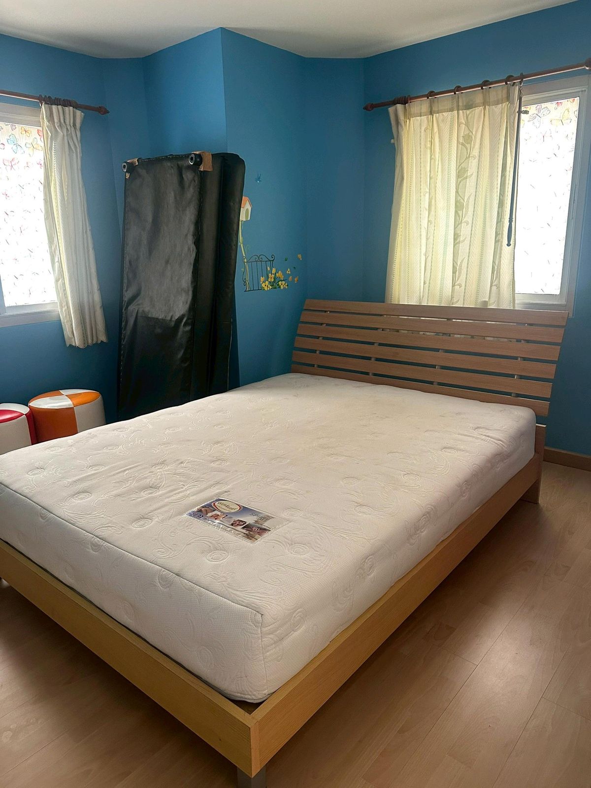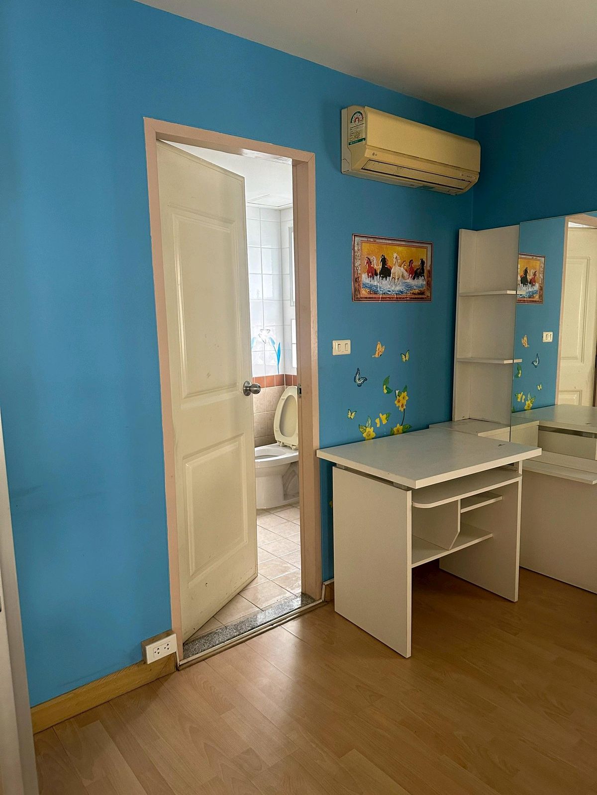 Condo on the main road, next to the BTS (BTS entrance is next to the condo). Room size 45 sq m. Corner room (Owner sells it himself Contact number) The room is built-in, including a table, cabinet, bed, furniture, and all the items in the room. The owner moved to another province since the Covid period.