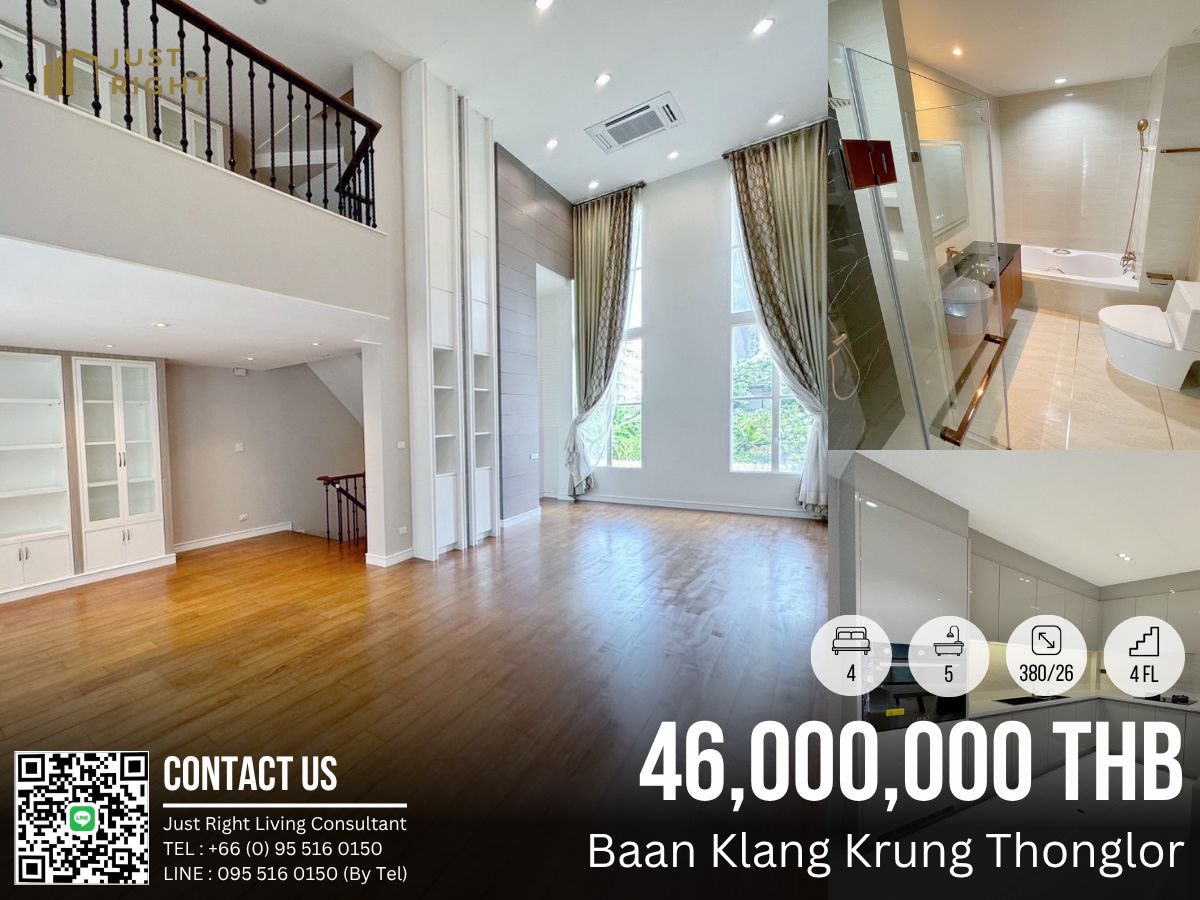 House for sale in the middle of Thonglor, 4 bedrooms, 5 bathrooms, size 380 sqm./ 26 sq.w., 4 -story townhome, empty house, some room, built -in, price 46 million baht (2%transfer fee, 1%payment per side) sell with the tenant to make an appointment to see the rights to look at the house only. *Chinese Below* -------------------------------------------------- Type : 4 bedroom, 5 bathroom Size : 380 square meter/ 26 square wah Floor : Townhome 4th floor Furniture and electrical appliances : Fully Fitted Sell price : 46,000,000 baht *Transfer fee 2% (buyer and seller pay half each)* -------------------------------------------------- For viewing appointment or further more information please contact Tel : Contact number Line : Contact number WhatsApp : Contact number WeChat ID : k Contact number Website : www.justrightlc.com ** If you looking for renting or purchasing condo for in a nearby location, Please feel free to contact us for more information or consultation ** ** If you prefer to rent out or sell out your condo, Please feel free to contact us or consultation ** -------------------------------------------------- 户型 : 2 间卧室 2 间浴室 面积:380 平方米/ 26 平方哇 楼层 :聯排別墅 4 楼 家具电器:设备齐全 售價:46,000,000 銖 土地厅过户费2% ,双方各付一半 -------------------------------------------------- 如果您有兴趣需要进一步的资料,约看房,请您立即联络,我们有中文服务销售 电话: Contact number 线路: Contact number 瓦次艾普 : Contact number 微信号:k Contact number(扫二维码) 网站:www.justrightlc.com ** 如果您在寻找附近公寓出租或购买,请您联系我们获取更多信息或咨询 ** ** 如果您有房源需要出租/出售 请您联系我们获取更多信息或咨询 **