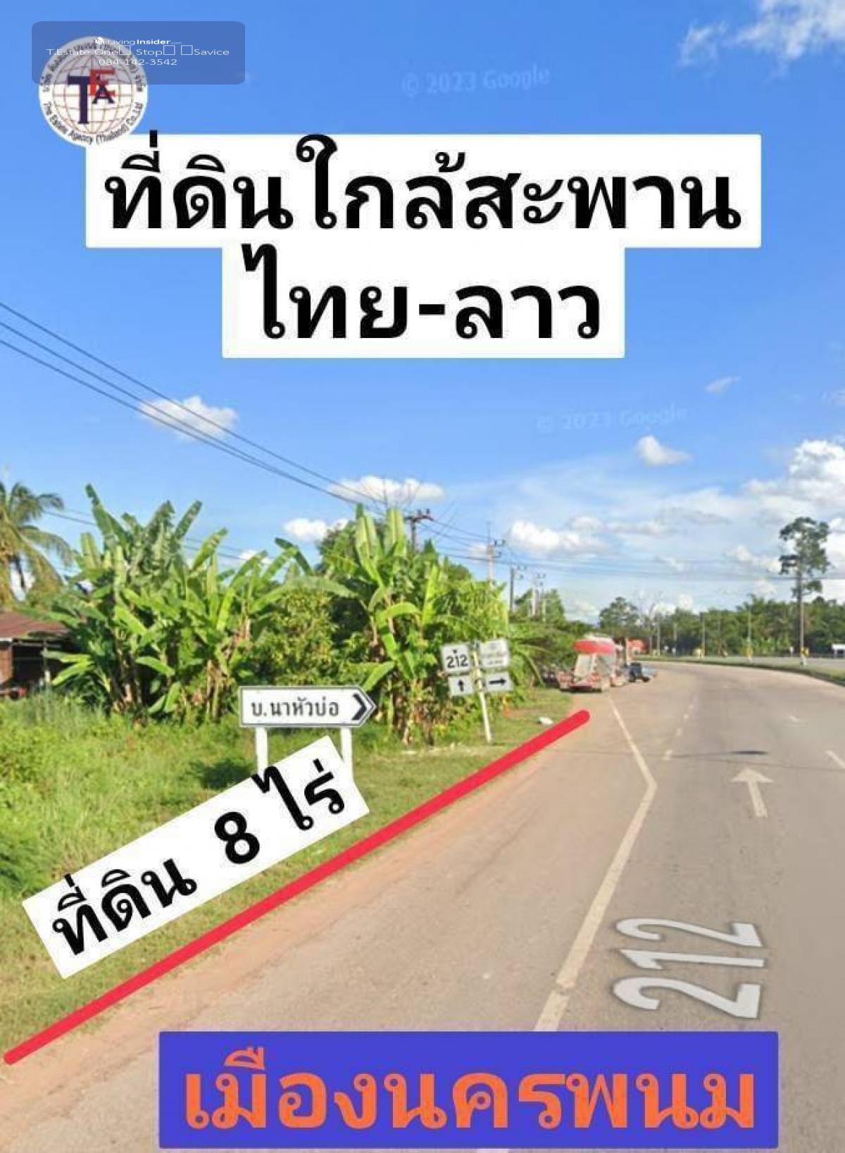 The Estate 19-18 Land for sale near the Thai-Laos Bridge, Nakhon Phanom City, area 8 rai, already filled, near the Mekong River. outpost city New economic source Location At Samat Subdistrict Mueang Nakhon Phanom District Nakhon Phanom Province Area 8 rai 129 square wah Land already filled A retaining wall has been made on the land in front of the Dan in front of the main road - suitable for a trailer park -Build a resort -Build a hotel - Build a condo Special price 7,000,000 baht per rai Transfer expenses, half each Make an appointment to see in advance. 1 day If interested, contact Add Line to view the house/ask for more information Call: Ms. Rita Contact number Ms. Rak: Contact number or Click the link to contact via Line. https://lin.ee/ynDY3gY Additional assets can be viewed at The Estate Agency (Thailand) Company Limited Home consignment center and land for investment www.Thaisecondhome.com www.theestateagency.net -Accept consignment sale of houses, condos, empty land, all types of real estate -Free advertising, marketing and media costs Until sold**-Free loan submission service No cost