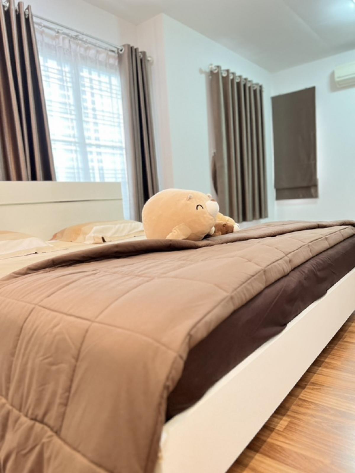 Single-family house for rent. Move in with complete electrical appliances + complete furniture in every room, only 23,000 baht per month Big house, 2 parking spaces with carport 3 bedrooms, 2 bathrooms, 1 living room + Thai kitchen extension, gas stove with range hood, food preparation area, 2 sinks Large Mitsubishi two-door refrigerator Washing machine Microwave Air conditioner, living room + all 3 bedrooms Beds with mattresses in every room Closets in every room, ready to move in There is a 7-11 store in front of the project and restaurants Nearby many shopping malls, such as Market village BIC C Lotus Thai Watsadu Future Park Rangsit Home Pro Go Wholesales MAKRO Boonthavorn Nearby shopping Department store - Pure Place Rangsit Khlong 2 ( ≈ 1.7 km.) Tesco Lotus Supermarket Sema Fa Kham ( ≈ 1.8 km.) Supermarket - Maxvalu Rangsit Khlong 2 ( ≈ 1.8 km.) Nana Charoen Market ( ≈ 2.2 km.) Nana Charoen Market ( ≈ 2.2 km.) Market - Phra Rup Khlong 2 ( ≈ 2.3 km.) Tesco Lotus Supermarket Lam Luk Ka Khlong 4 ( ≈ 2.6 km.) Market - Rungroj Khlong 4 ( ≈ 3 km.) Talat Klang Lat Sawai ( ≈ 3.2 km.) Supermarket - CJ Supermarket Boonromyen Market Branch ( ≈ 3.3 km.) Nearby public transportation BTS Sukhumvit Line - Khu Khot Station ( ≈ 5.5 km.) BRT Suburban Electric Train, Dark Red Line - Lak Hok (Rangsit University) ( ≈ 6.2 km.) BRT Suburban Electric Train, Dark Red Line - Rangsit ( ≈ 6.5 km.) BTS Sukhumvit Line - KPO Intersection ( ≈ 7.2 km.) BTS BTS Sukhumvit Line - Air Force Museum Station ( ≈ 8 km.) BRT Suburban Electric Train, Dark Red Line - Khlong Nueng ( ≈ 8.4 km.) School School - Chok Chai Rangsit ( ≈ 4.0 km.) School - Kong Fah Wattana Wittaya ( ≈ 0.3 km.) School - Nakhon Rangsit Prempree ( ≈ 0.8 km.) School - Ban Wangthong Kindergarten ( ≈ 1 km.) School - Fa Sirin Kindergarten ( ≈ 1.9 km.) School - Thesaban 1 (Kachonnetiyut) ( ≈ 1.9 km.) Siam International School ( ≈ 2.2 km.) School - Duangkamol ( ≈ 2.4 km.) School - Beaconhouse Yamsad Rangsit ( ≈ 2.7 km.) School - Latdawan Kindergarten ( ≈ 3.1 km.) School - Thipphakon Witthayakarn ( ≈ 3.2 km.) Nearby convenience stores Convenience stores - CJ Express Rangsit Khlong 3 Branch ( ≈ 0.6 km.) Convenience store - CJ Supermarket, Rangsit Khlong 3 Branch ( ≈ 0.6 km.) Convenience store - Tesco Lotus Express, Warangkun Village-Pathum Thani Branch ( ≈ 0.7 km.) Beautiful house for rent, nice to live in, good condition Multiple entrances and exits, easy to find food Make an appointment to view immediately, price negotiable If interested, chat or call me.