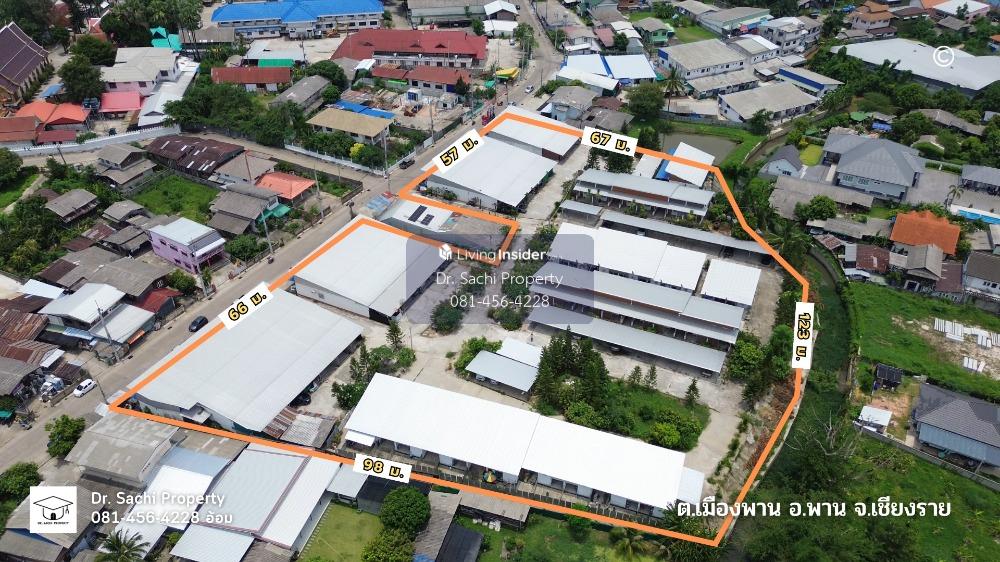 Property ID : M08250 Beautiful land, good location in the heart of Phan District, with a dormitory business. Ready to continue investing Always full of tenants - Land area 6 rai 3 ngan 8.9 square wa (2,708.9 sq wa.) - Land width 123 m., depth 93 m. approximately - Land frontage, northeastern direction - next to Thesaban Road on 2 sides, 66 m. and 57 m. - Southwestern direction, next to Mae San Canal : : Dormitory details : : - 1-storey dormitory, total of 34 rooms - Size: 1 bedroom, 1 bathroom - Wrought iron installed - Ready to install air conditioner water heater and some furniture - There is parking in every room : : Details of shops in front : : - Commercial building, 1 floor, total 24 rooms - Width 4 m., depth 25 m. per booth - usable area 100 sq m. per booth - 1 bathroom with land area behind the shop building - Can park the car Every booth -------------------------------------------------------- : : Outstanding features : : - Strong building structure. Always full of tenants Ready to continue operating, Yield approximately 4% - In the heart of the city, Phan District, near educational institutions. Government offices, hospitals, supermarkets - Convenient travel Next to Thetsaban Road, 1.3 km from Phon Yothin Road. -------------------------------------------------------- Location : : Thetsaban Rd., Mueang Phan Subdistrict, Phan District, Chiang Rai Province Google Map : : https://maps.app.goo.gl/QurfNaenqAN2eMrE9 -------------------------------------------------------- : : Nearby places : : - Phan District Office - Phan Phosoksawat School - Phan District Public Health Office - Luang Preecha Fresh Market - Phan District Provincial Electricity Authority - Thesaban 1 School (Ban Kao) - Global House Phan - Phan Pittayakhom School - Wat Pa Sang, Phan District - Wat Phra That Chom Wae - Phan Hospital -------------------------------------------------------- Total selling price : : 60,000,000 baht (Transfer fee, each party pays half) -------------------------------------------------------- : : For more details, contact : : Mr. Chatsachee Chatpapamon (Aom) (affiliated with the Thai Real Estate Brokers Association) Tel : Contact number LINE ID : dr.sachiproperty LINE OA : @dr.sachiproperty Facebook : Dr. Sachi Property