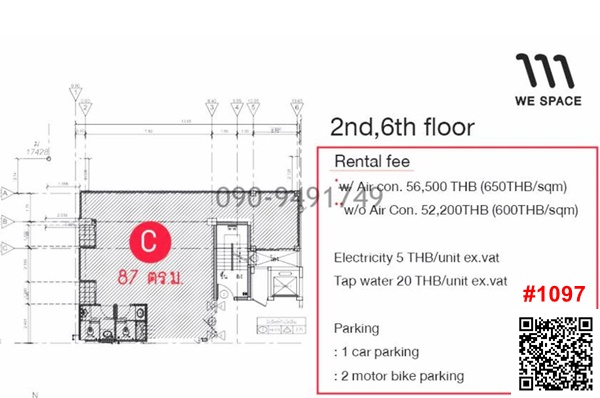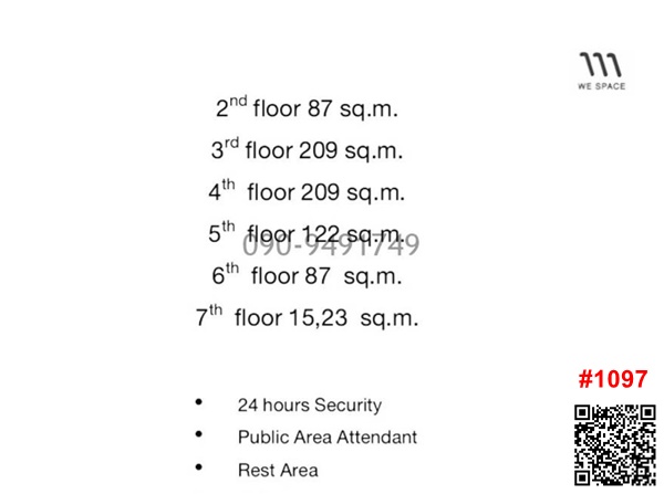 Rent space for opening an office, WE SPACE office, Soi Thonglor 5, near BTS Thonglor #1097 , 7th floor, site 15 sq m., price 18,000 baht 7th floor, site 23 sq m., 2 rooms, price 27,000 baht, has air conditioning, 1 year contract, free water ----------------------------------------------------------- 2nd,6th floor, site 87 sq m., price 56,600 baht, parking for 1 car, 5th floor, site 122 sq m., price 85,400 baht, parking for 2 cars Ensuite bathroom, water bill 20 baht/unit, electricity bill 5 baht, deposit 3 months, first month rent, 1 month, minimum contract 3 years Decoration deposit 20,000 baht Location Thonglor Soi 5, Khlong Tan Nuea Subdistrict, Watthana District, Bangkok 10110 For more information, scan the QR code. Capture the picture and contact Line Line id: @agent-condo (with @ in front) Tel. Ms. Irada Contact number Tel. Admin Contact number (WhatsApp) www.agent-condo.com #Room for rent #House for rent #Bangkok #Condo for sale #House for sale #Second hand condo for sale #Bangkok #Thailand #Cheap price #Close to BTS #Next to BTS #Next to the Skytrain #Free real estate consultation #Condo #Rent and sell #Free marketing #Townhome for rent #Townhome for sale #Condo for rent #Office for rent #Space for rent #Thonglor
