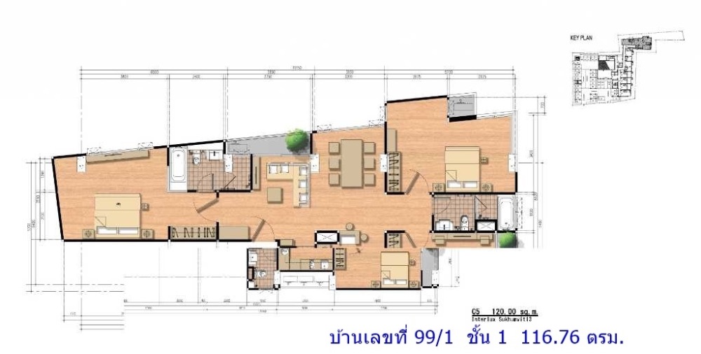 Sell ​​Condo near BTS Asoke 3mins Interlux13 Large 3BED size 116.76 sqm 16.80 MB Condo InterLux Premier Sukumvit 13 Floor 1st Penthouse (8 storey) Area 116.76 sq.m. Type 3Bed2Bath Selling Price = 16,8