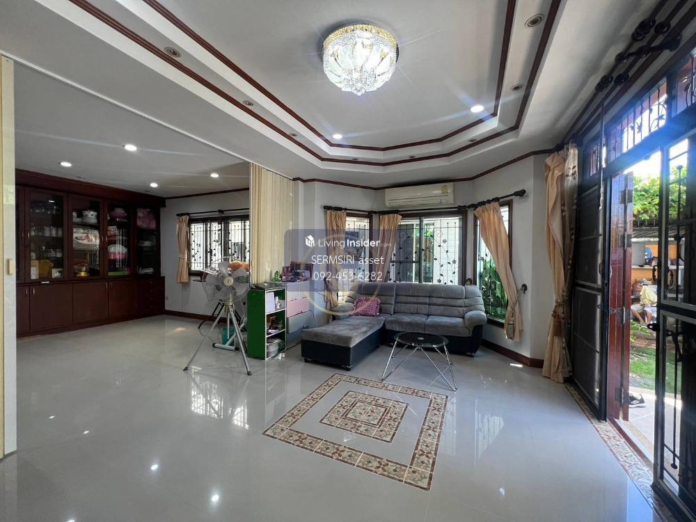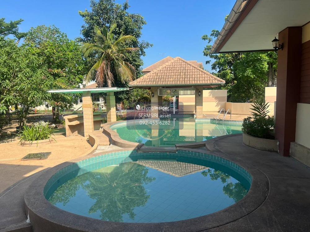 2-story detached house in the Charoonrat Parkville project, corner plot, the 2nd largest area in the project Land size 102.3 square wah , total usable area 310 square meters consists of 1. 1 large 2-story house 2. Another small house, one-story building : Big house , usable area approximately 250 sq m. 3 bedrooms, 3 bathrooms, 1 dressing room, 1 prayer room, 1 large kitchen, and maids room : Small house (constructed) , usable area 60 square meters , 1 bedroom, 1 bathroom, currently used as an office ***Highlights of this house*** 1.Position of the location of the inner corner plot Near the beginning of the project, quiet, easy to get in and out **Front of the house faces south, the wind blows cool and comfortable all day 2. The house is taken care of by the owner. It always looks new and the structure has no problems. The water and electrical systems work well. 3. Investing more than 3 million baht in improving and expanding the house. 4. The characteristics of the house are suitable for both living 5. The house structure is very strong with construction using clay bricks. The clear ceiling is 2.65m high. 6. The road in front of the house is 8 meters wide Good management law project Shady, clean, safe facilities Swimming pool, fitness has security. (Security guard) Playground Clubhouse Common fee is only 13,200 baht per year. The village has a total of 137 units Convenient transportation With public transportation on the Bangkok-Pathum Thani road, the project is located near many important places such as Kanchanaphisek Somphot School. Laem Thong Technology Pathum Thani Hospital Tesco Lotus and Pathum Thani Fresh Market Selling price 6,500,000 baht including transfer day expenses If interested, ask for more details or make an appointment to visit, contact Ms. Ann (Sermsiri) Contact number Real estate consultant of all types