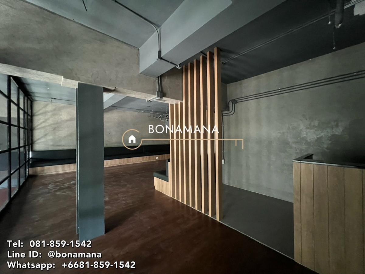 Commercial space for rent in Ekamai. Space for rent, 1st floor + mezzanine Ceiling height 5.66 meters Total area 265 square meters 1 hall, 1 kitchen 2 bathrooms, male and female Suitable for - Clinic | Spa | Wellness - Product showroom | Restaurant - Cafe | Bakery and others *** Do not accept loud business!!! *** Rent 250,000 baht / month 3 years rental contract 2 months deposit, 1 month advance Please contact Khun Tang: Contact number Line ID: @bonamana Whatsapp: Contact number