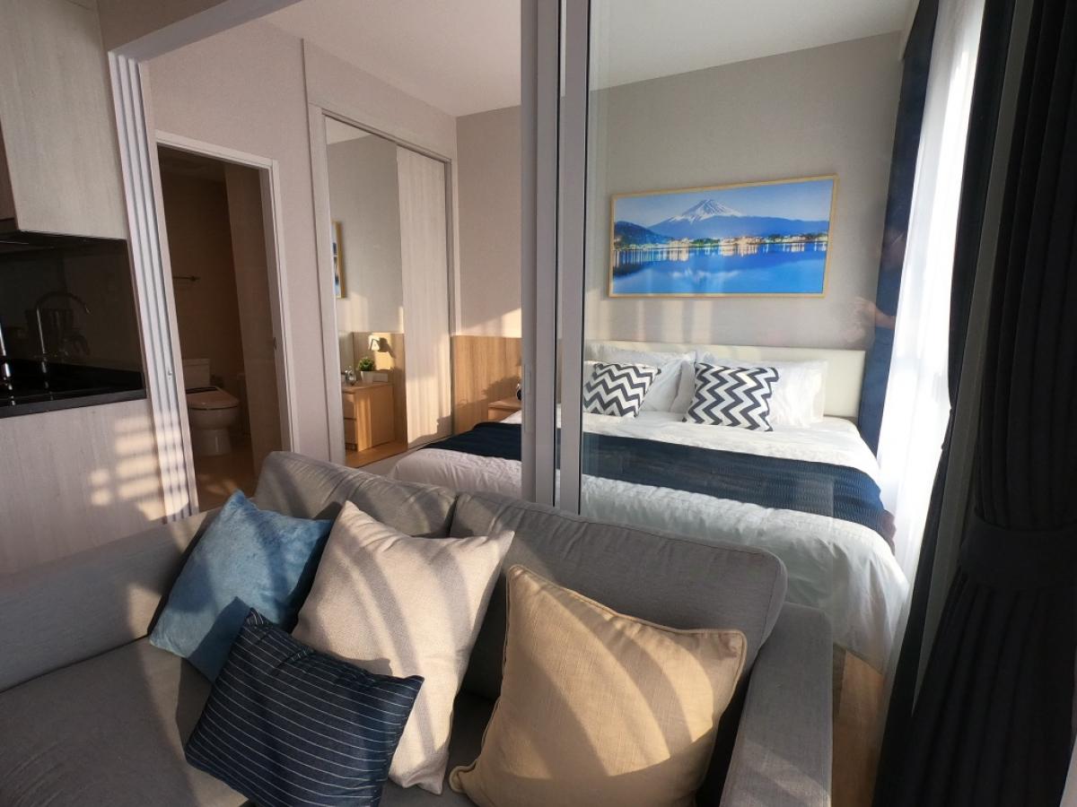 The Zea Sriracha Condominium is 39 -story oceanfront condominium highest in Sriracha which surrounded by the beauty of nature. Front of the building facing the sea and the back is surrounded by mountains. The Modern Zen concept combines simplicity and modernity with ceiling height of 2.75 m. 1 Bedroom of the Zea Sriracha for rent, 35.91 sq.m. , 16 Floor, South Facing, Sea View, Koh Loy View. Rental fee is one month for advance and deposit is two months. Room with fully furnished - TV 50" - Refrigerator 2 doors- King size Bed with Mattress - Built-in Wardrobe - Sofa 2 seats with sofa table - Microwave Oven 23 liters - Toaster, Electric Kettle and Coffee Maker - 2 units of Air conditioner (Living room and Bedroom) - Engineering woods floor- Built-in Shoes Cabinet - Built-in Kitchen set - Electric stoves and Cooker hood set - Front loading washing machine 8 kg - Water heater (Steibel) - Electronic Washlet - Digital Door Lock - Bathtub - Field Table with 2 chairs set - Dinner Table with 2 chairs set