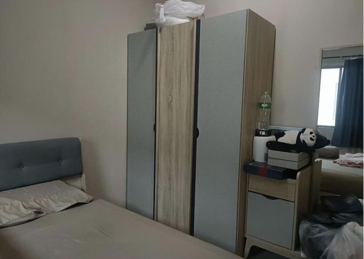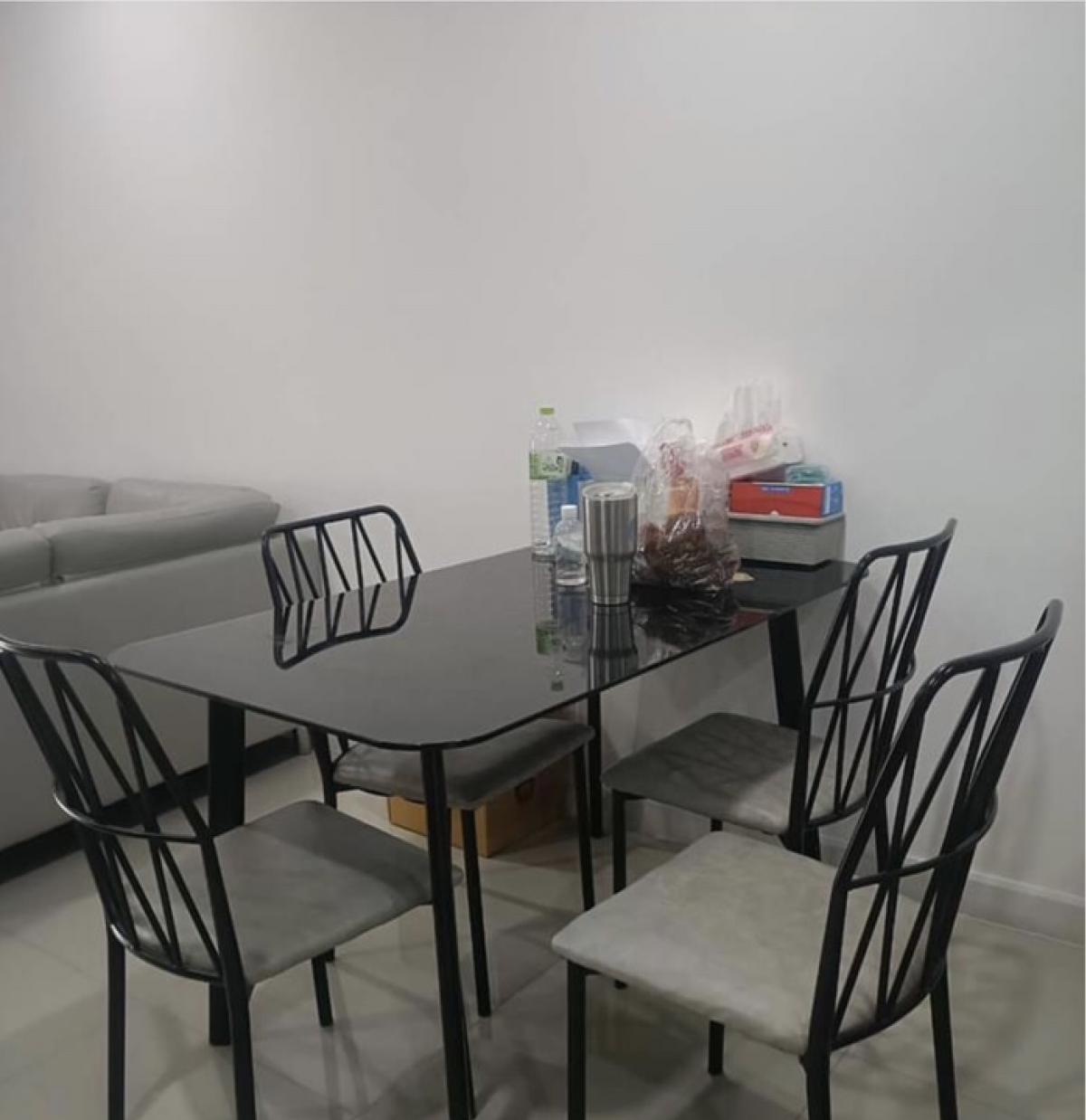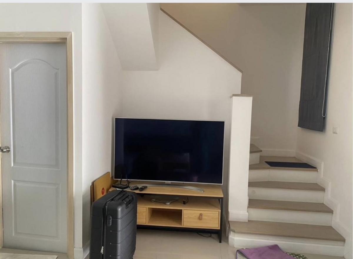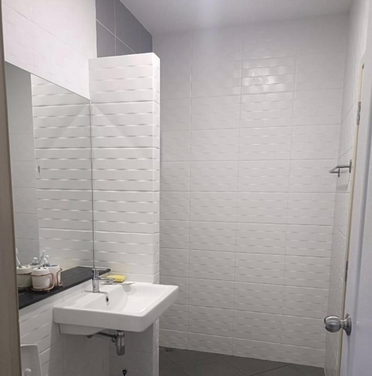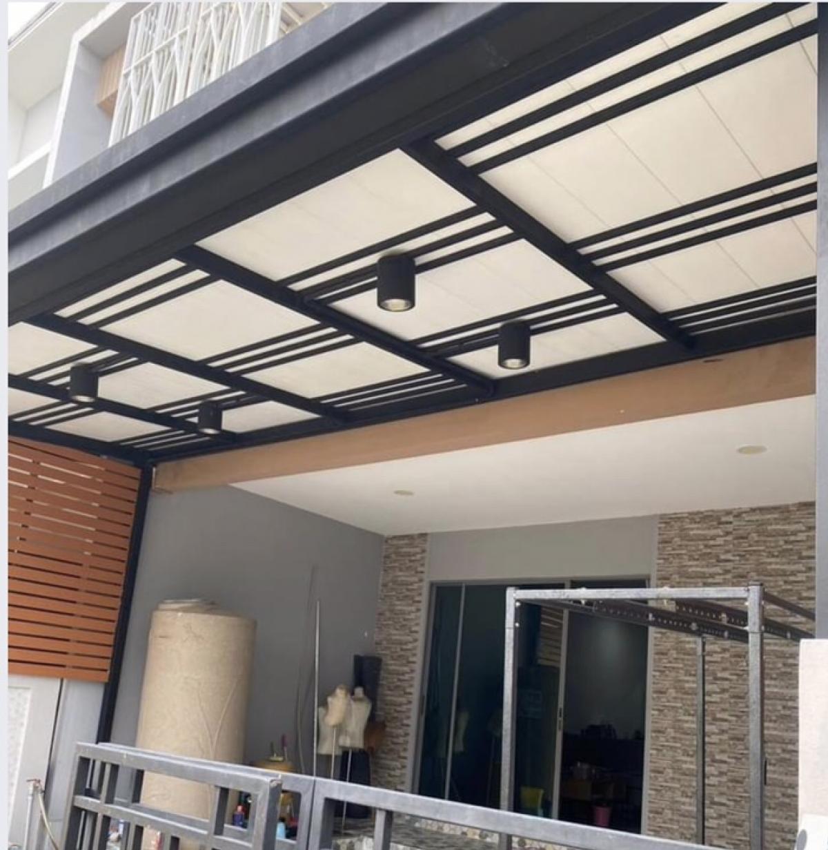 Selling 2-storey townhouse, Metro Rama 9-Krungthep Kreetha project, area 19.7 square wah, 4 bedrooms, 2 bathrooms, 1 kitchen, 4 air conditioners, 2 TVs, refrigerator, washing machine, water heater, microwave, water filter, table, cabinet, bed, water tank, all included, selling price 3.69 million baht, negotiable, transfer fee split in half, interested, contact Contact number and Contact number